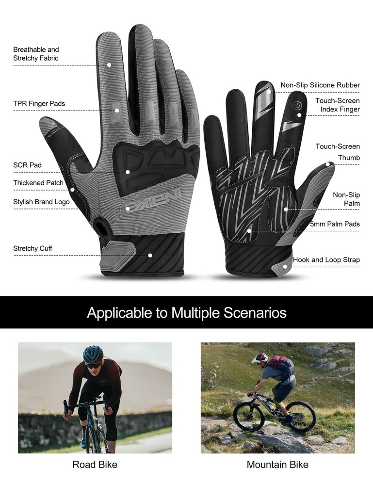 These gloves are a game-changer for mountain biking! The knuckle protection is solid yet breathable, and the padded palm absorbs shocks perfectly while keeping a firm grip. The stretchy, breathable fabric makes them super comfortable for long rides. No more numb hands or slipping—just smooth, confident control on every trail. Highly recommend!