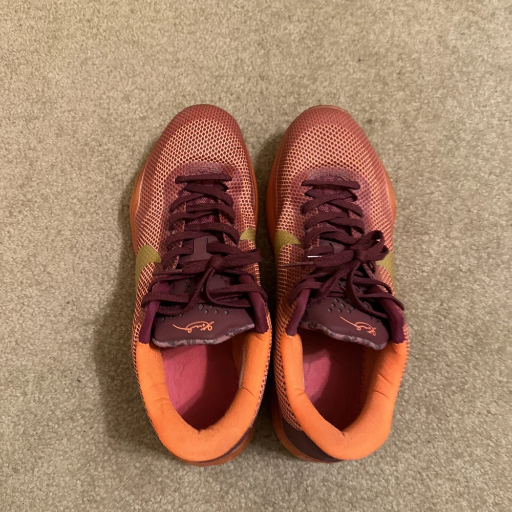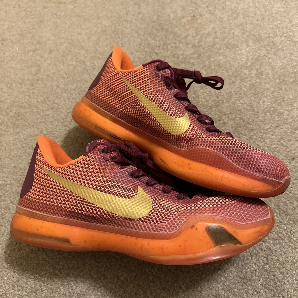 THESE SHOES DO NOT COME WITH INSOLES. Elevate your basketball game with these Men's Nike Kobe 10 Silk Road Basketball Shoes in Size 11. These pre-owned sneakers are perfect for any athletic activity, with a comfortable and stylish design that includes a silk upper material. The orange color and Nike branding make these shoes a must-have for any sneaker enthusiast. The Nike Kobe 10 model is part of the Nike Kobe product line, and is perfect for men who want to add a touch of elegance to their athletic wear. These shoes are suitable for basketball, with a performance-enhancing design that ensures you get the best out of your game. Don't miss out on these stylish and functional sneakers.