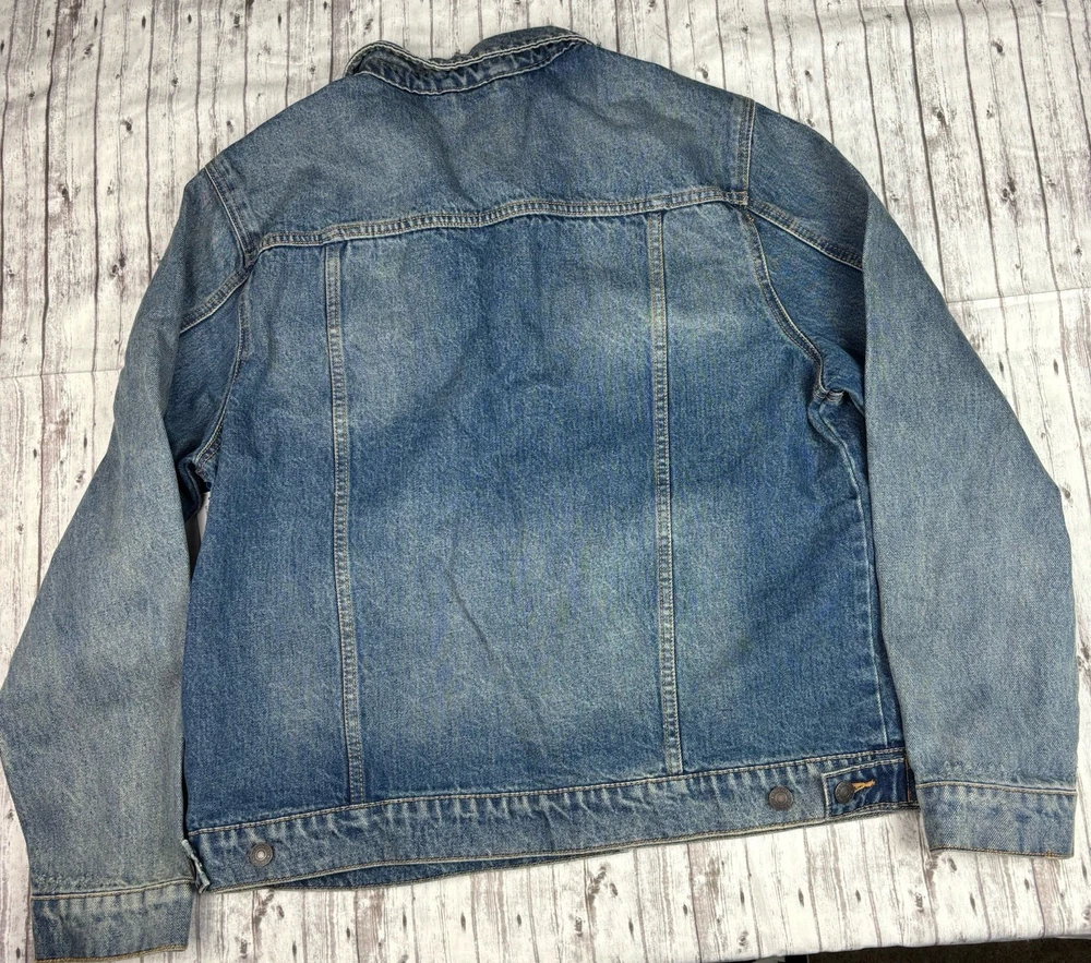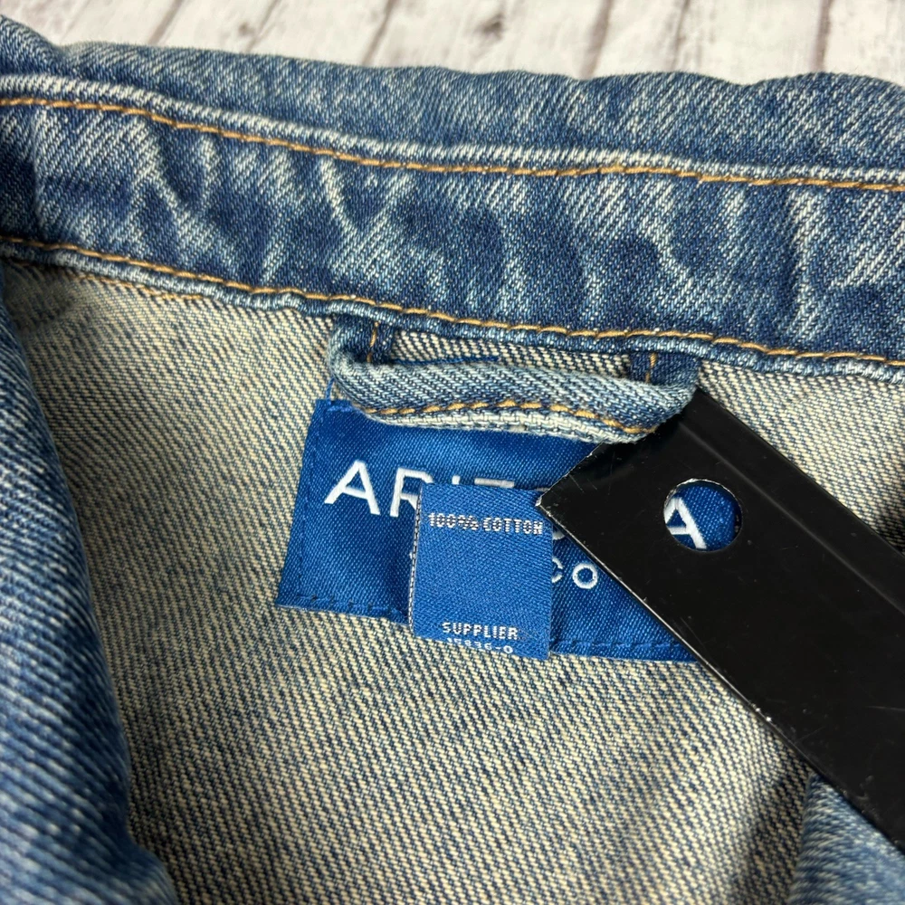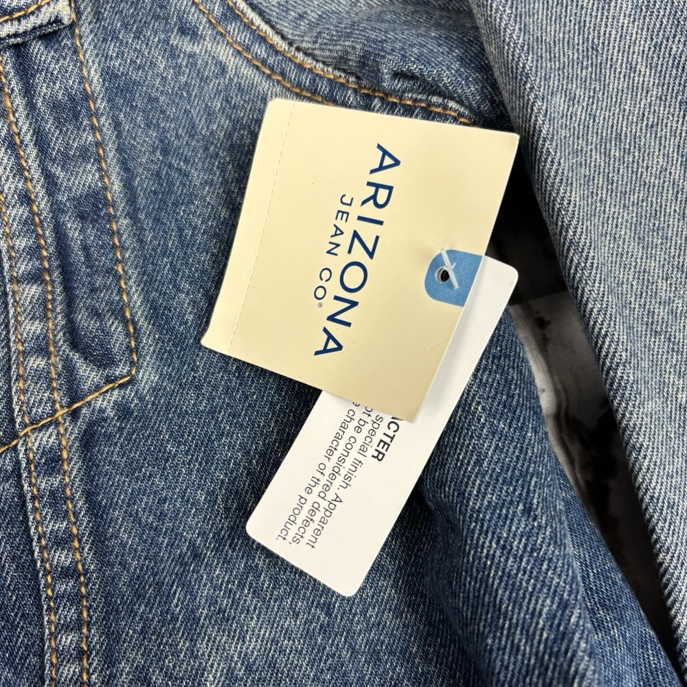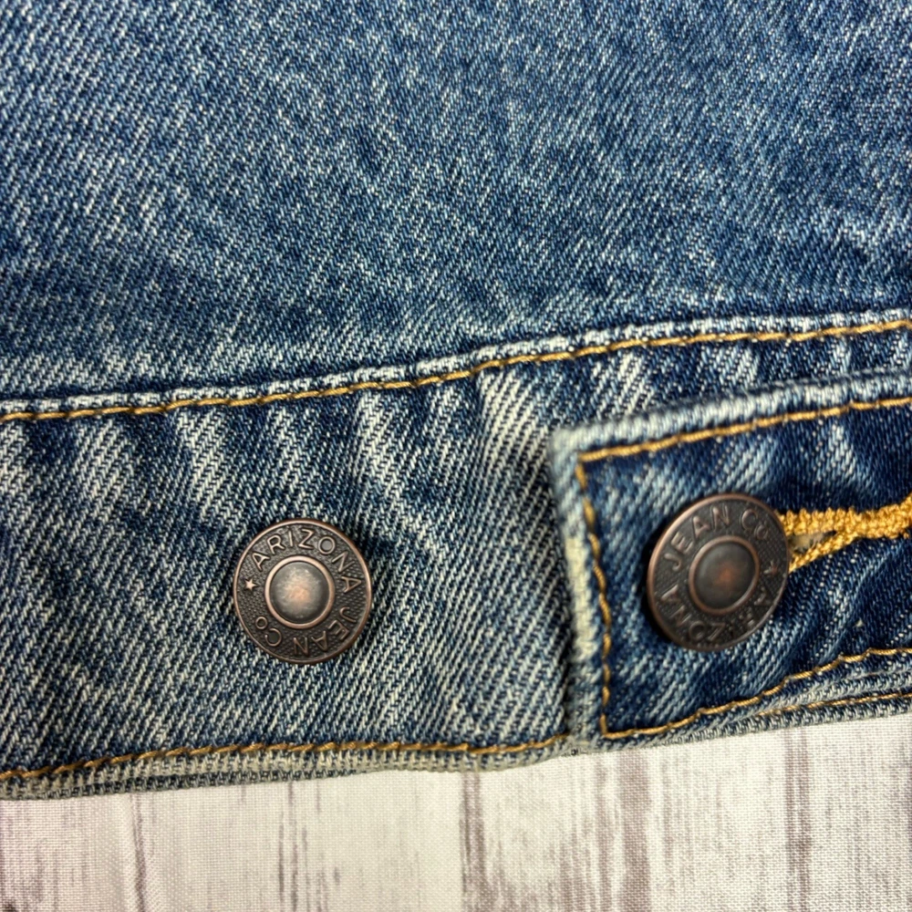 The product is a Men's NWT Y2K Arizona Jean Company denim jacket in size XL, featuring a vintage indigo color. Made of cotton denim, this jacket is designed in a classic style with a regular fit. Perfect for men looking for a timeless and stylish addition to their wardrobe, this vintage piece from the Arizona brand offers a unique and retro vibe.