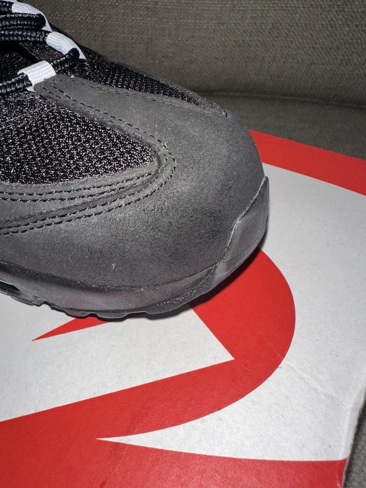 Brand:NikeUS Shoe Size:9Upper Material:LeatherSigned:NoSeller Notes:“Small scratches”Closure:Lace UpProduct Line:Nike Air MaxCountry of Origin:ArmeniaType:AthleticVintage:NoOccasion:CasualModel:Nike Air Max 95Style:SneakerColor:MulticolorDepartment:MenCustomized:No