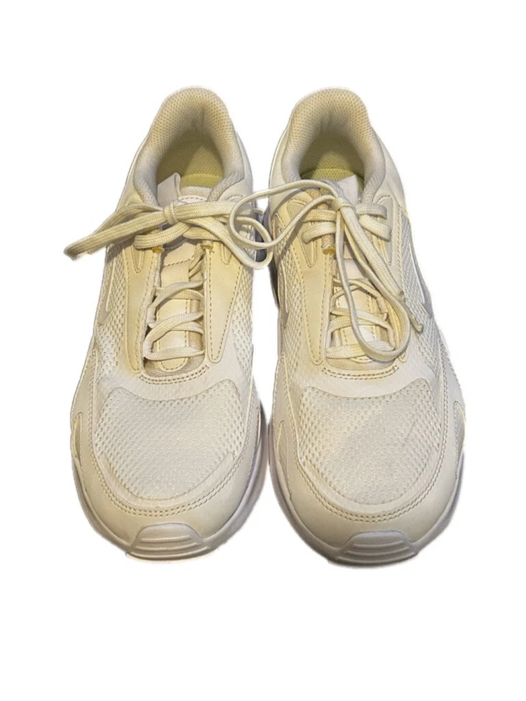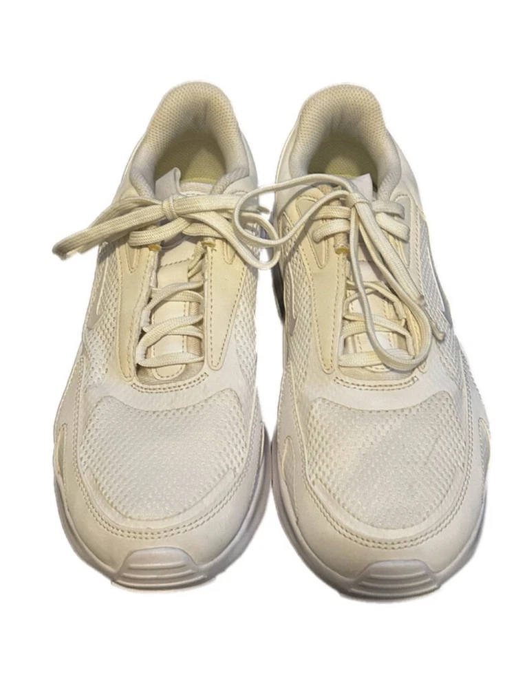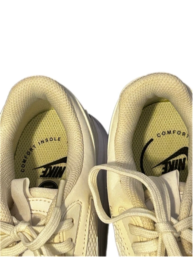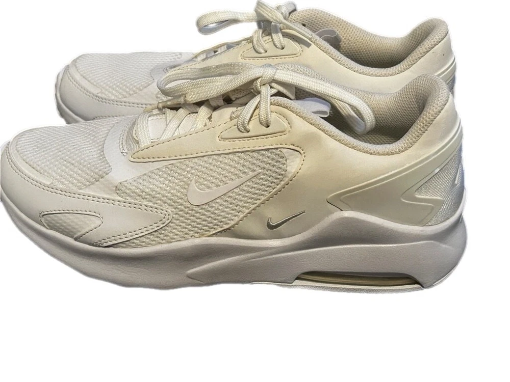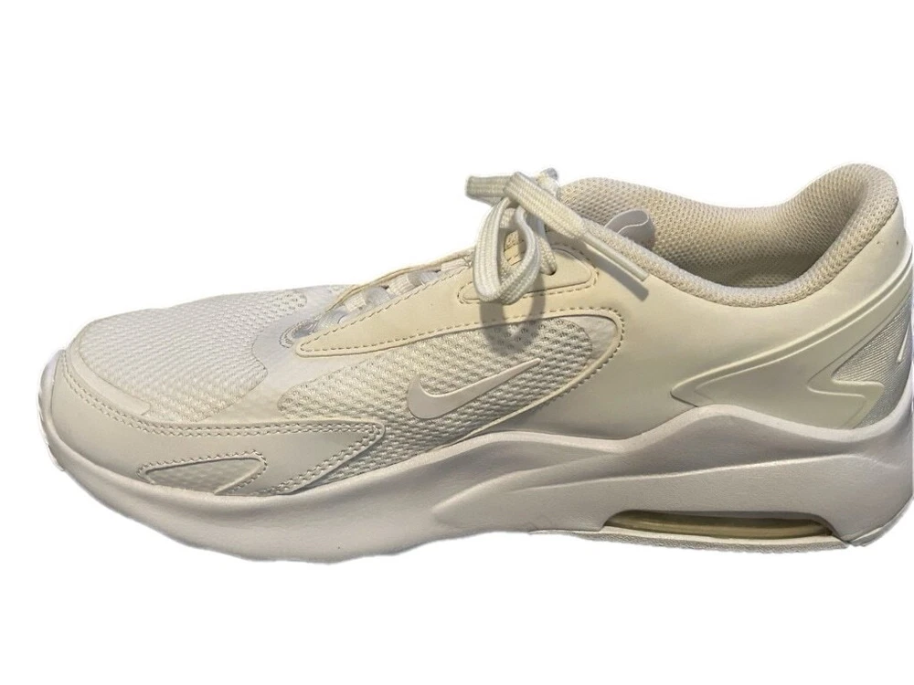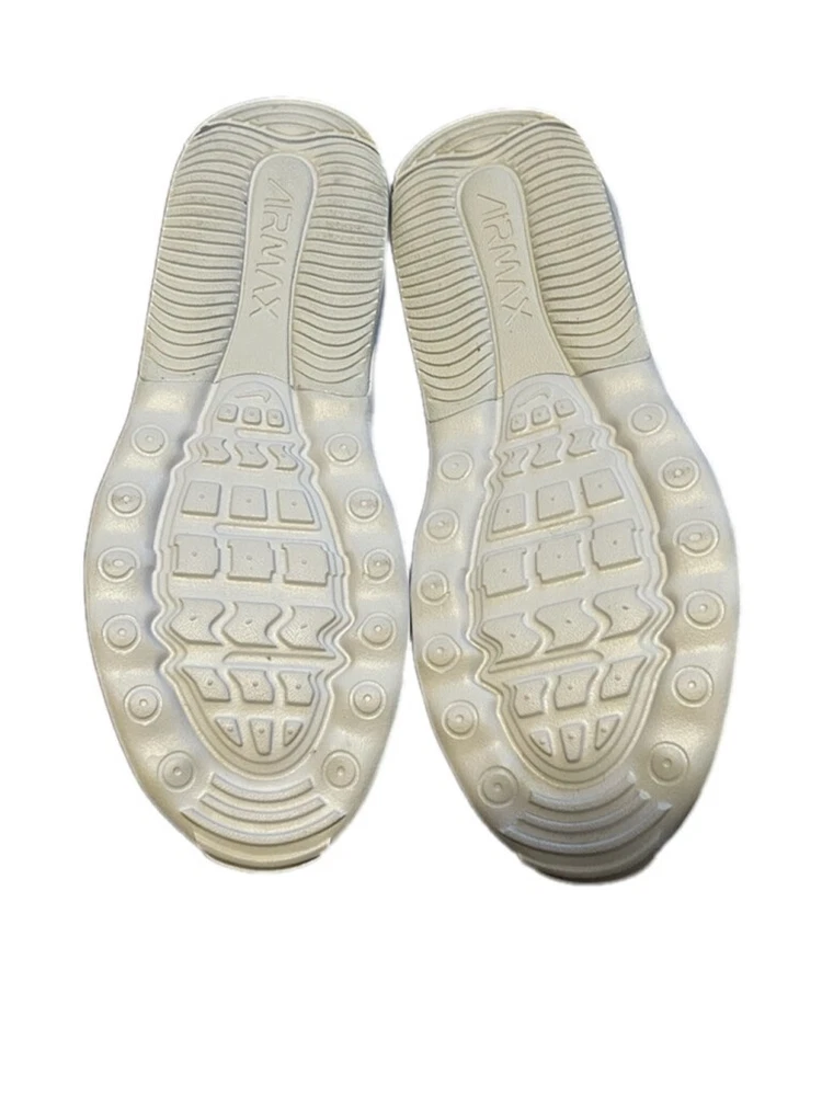 These are pre-owned Nike Air Max Bolt Triple White. They feature a mesh and leather upper with a white rubber sole. The shoes have a lace-up closure and a padded tongue and collar. The Nike swoosh logo is visible on the side of the shoes. The shoes are in good condition with some minor signs of wear. The soles are slightly worn and there are some minor scuffs on the upper. The shoes are size 7.5. SERIES Air Max NICKNAME Triple White STYLE Sports SEASON All Season UPPER MATERIAL Fabric/Synthetic Leather CLOSURE Lacing SOLE MATERIAL Rubber Sole TOE TYPE Round Toe HEEL TYPE Thick bottom COLOR WAY White