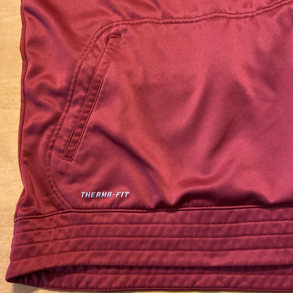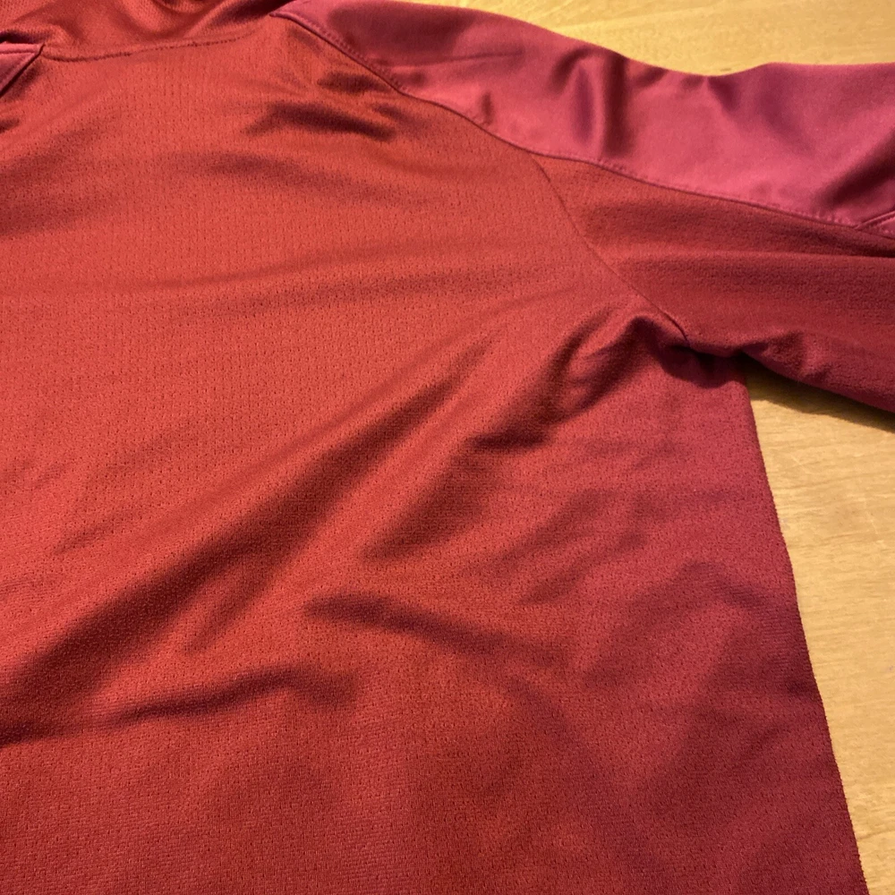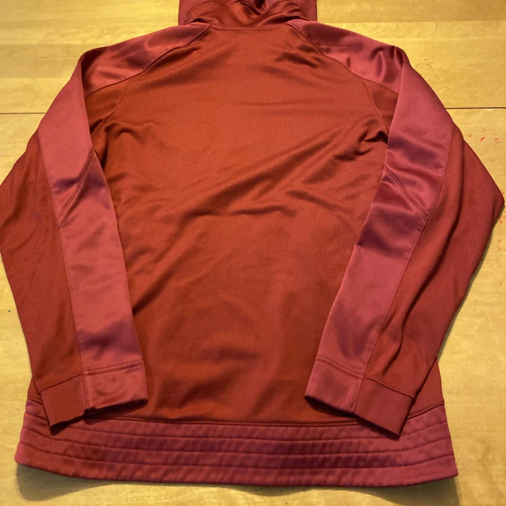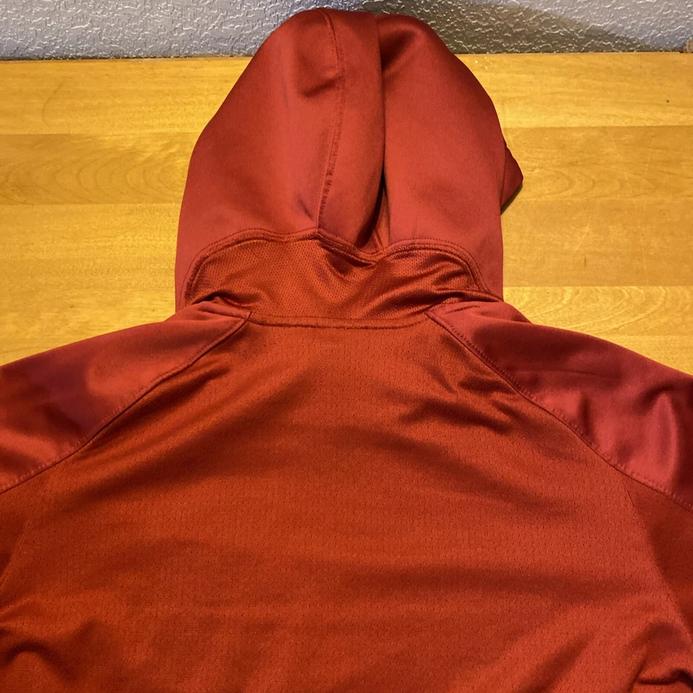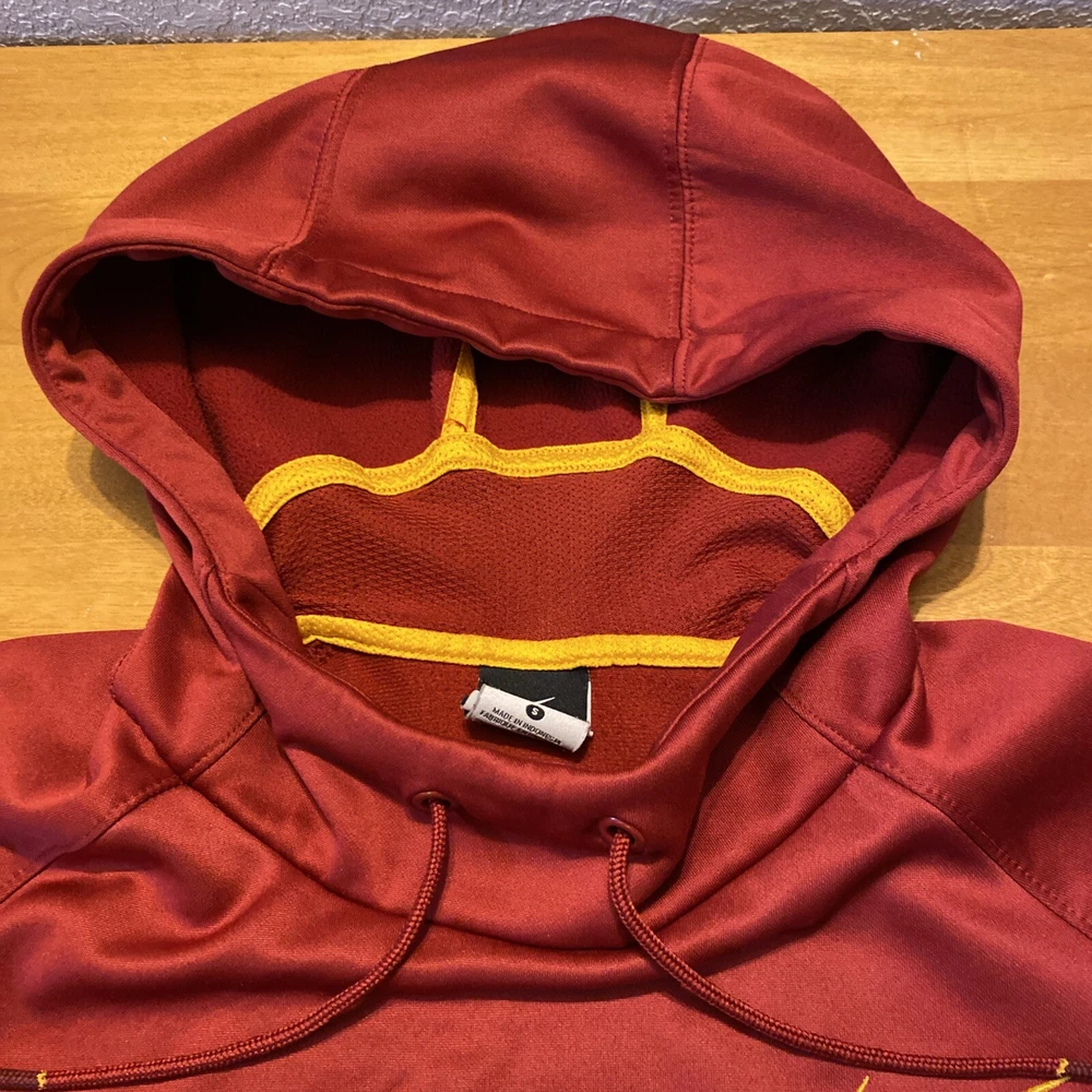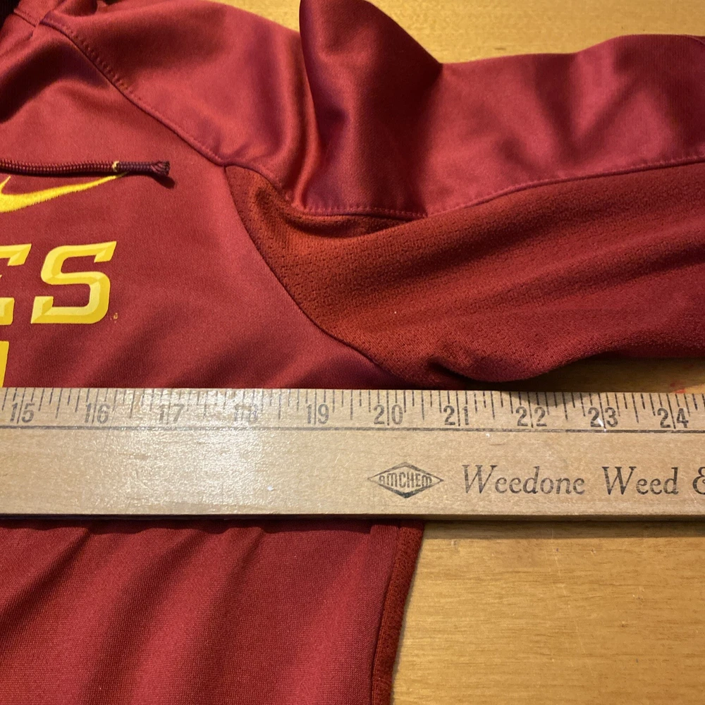 Show your support for the Iowa State Cyclones with this officially licensed Nike Dri Fit sweatshirt. Made for men, this red hoodie is perfect for basketball fans who want to stay comfortable and stylish. The size small sweatshirt features the Iowa State Cyclones team logo and is made with Nike's signature Dri Fit technology, keeping you cool and dry during intense games. Whether you're at the gym or cheering on your team at the arena, this sweatshirt is a must-have for any Iowa State Cyclones fan. This is a pre owned sweatshirt and looks big for a small please look over pictures and measurements