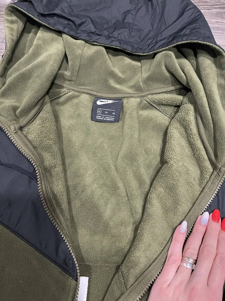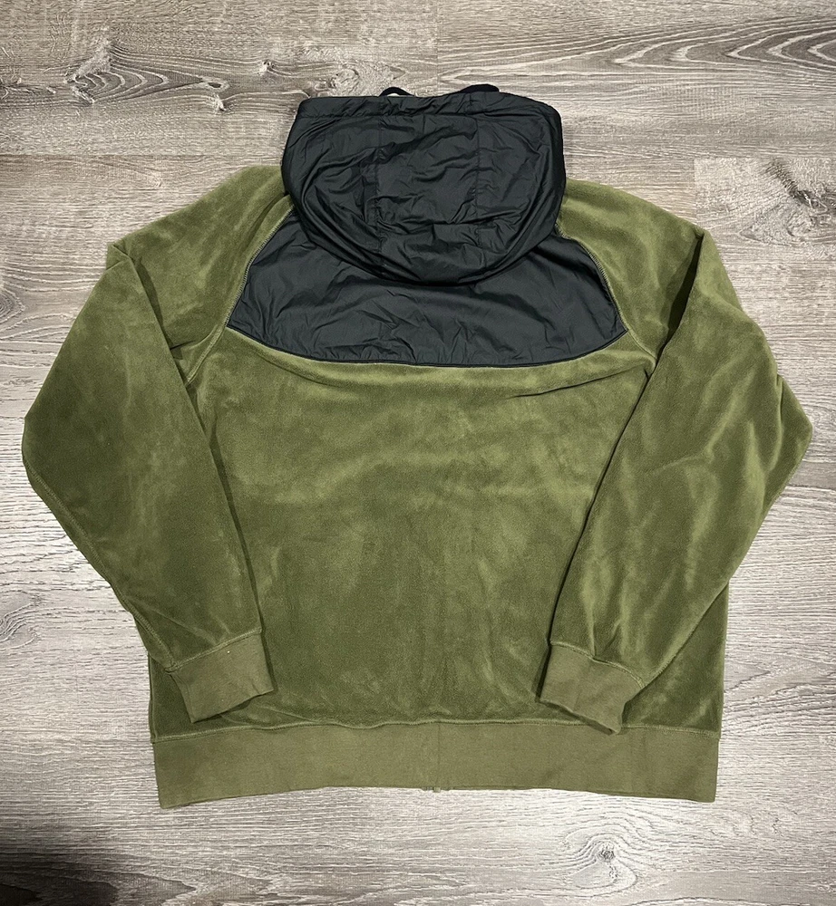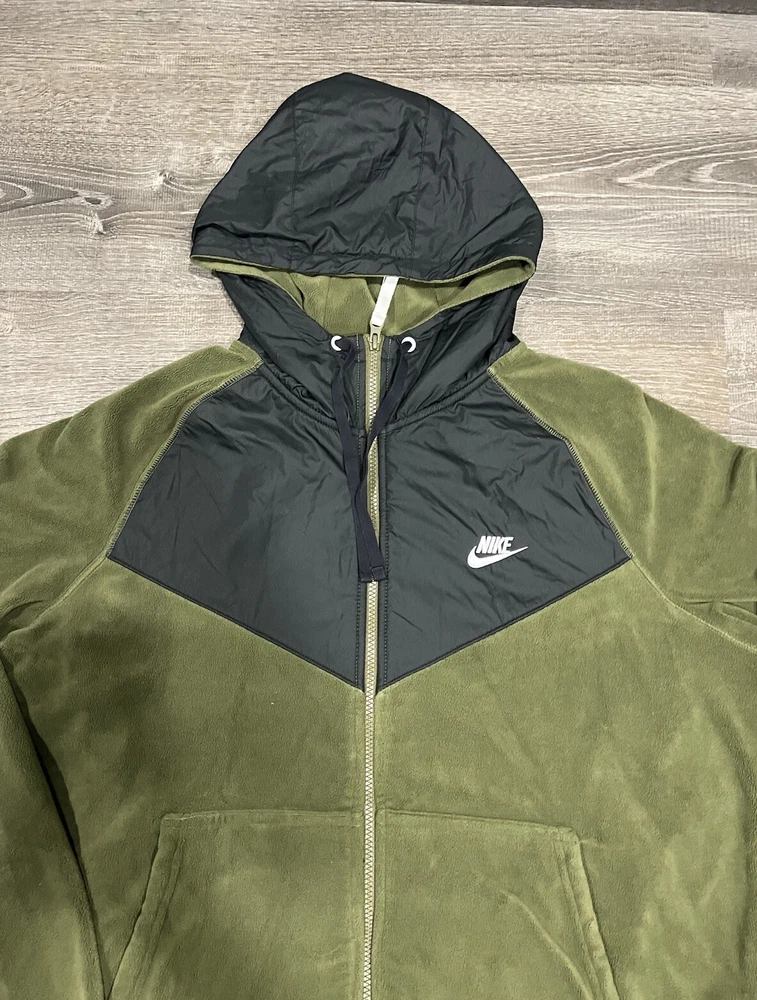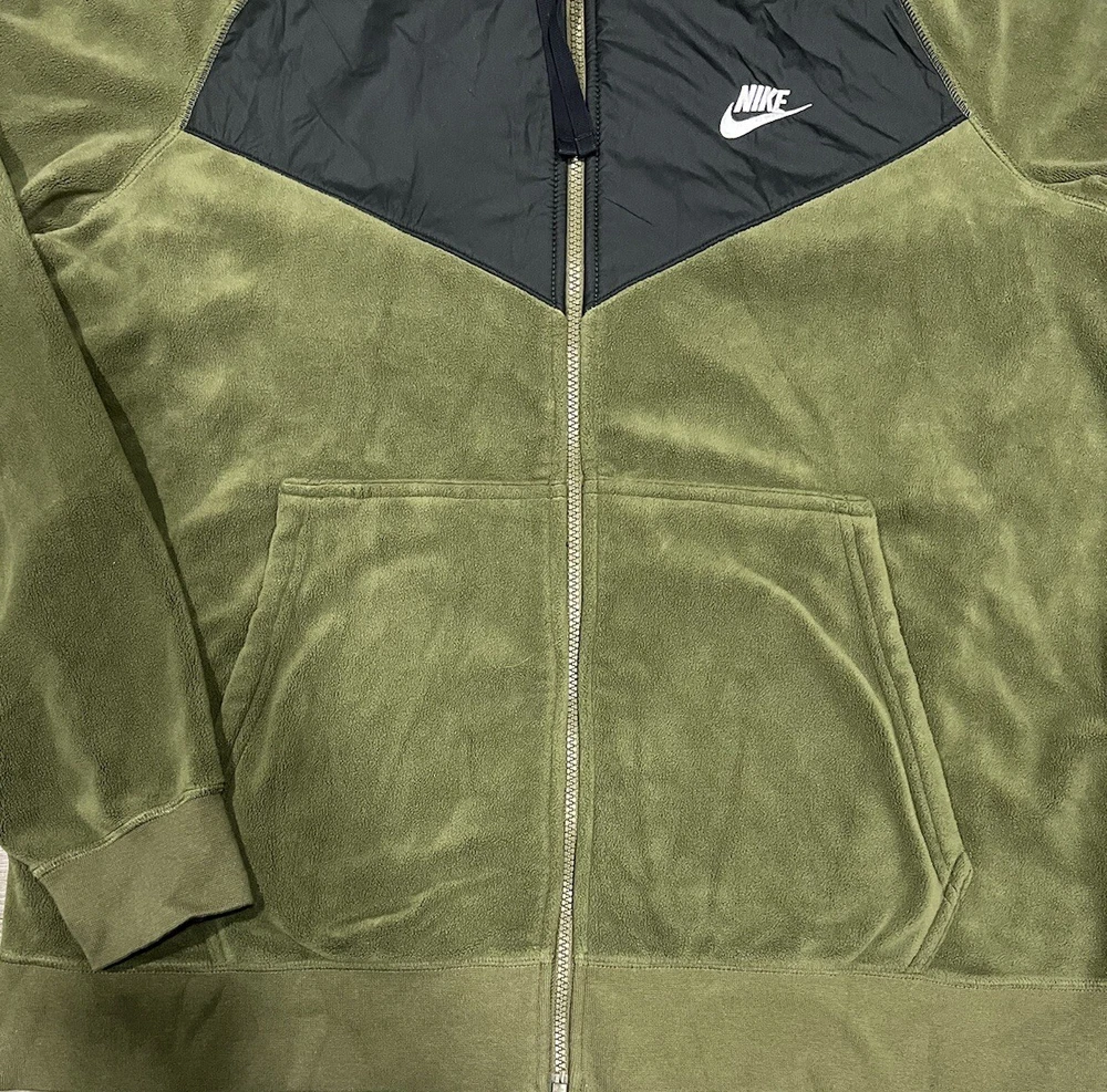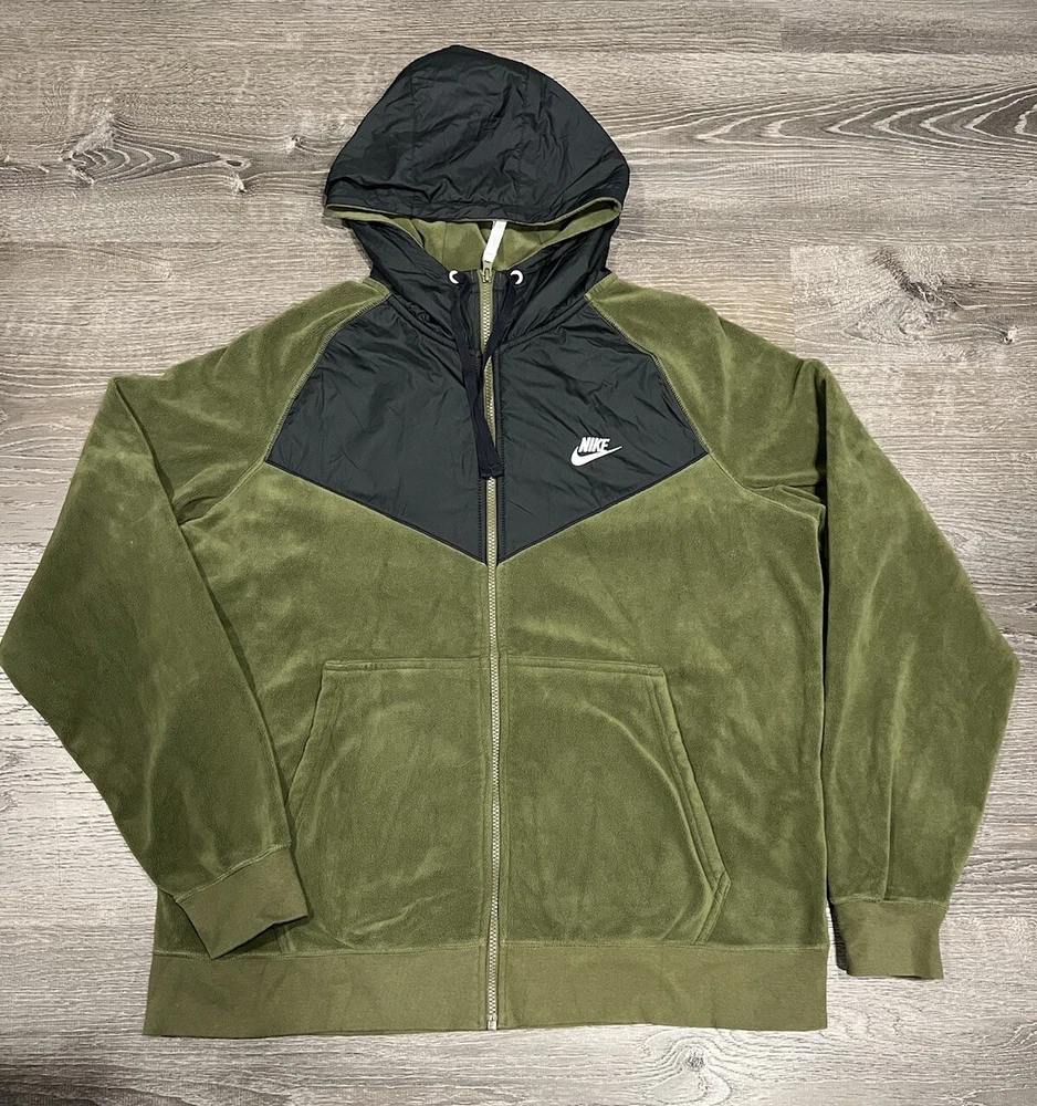 This Men's Nike Sportswear Full-Zip Fleece Hoodie in size XL is the perfect addition to your activewear collection. The hoodie comes in a solid green color with a black logo accent and a high neckline. It features a full zip closure and long sleeves, making it ideal for walking or any other leisurely activity. The garment is made of soft cotton fleece and is machine washable for easy care. The hoodie is part of the Nike Sportswear product line and is designed for big and tall men. It has a regular fit and is suitable for any occasion. Whether you're going out for a walk or running errands, this hoodie will keep you warm and comfortable.