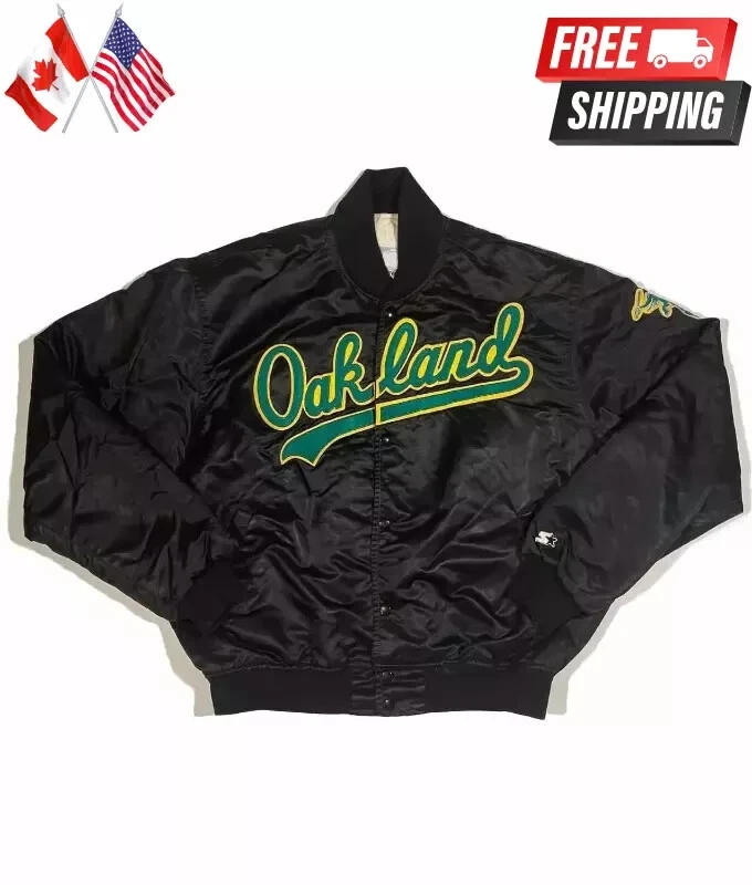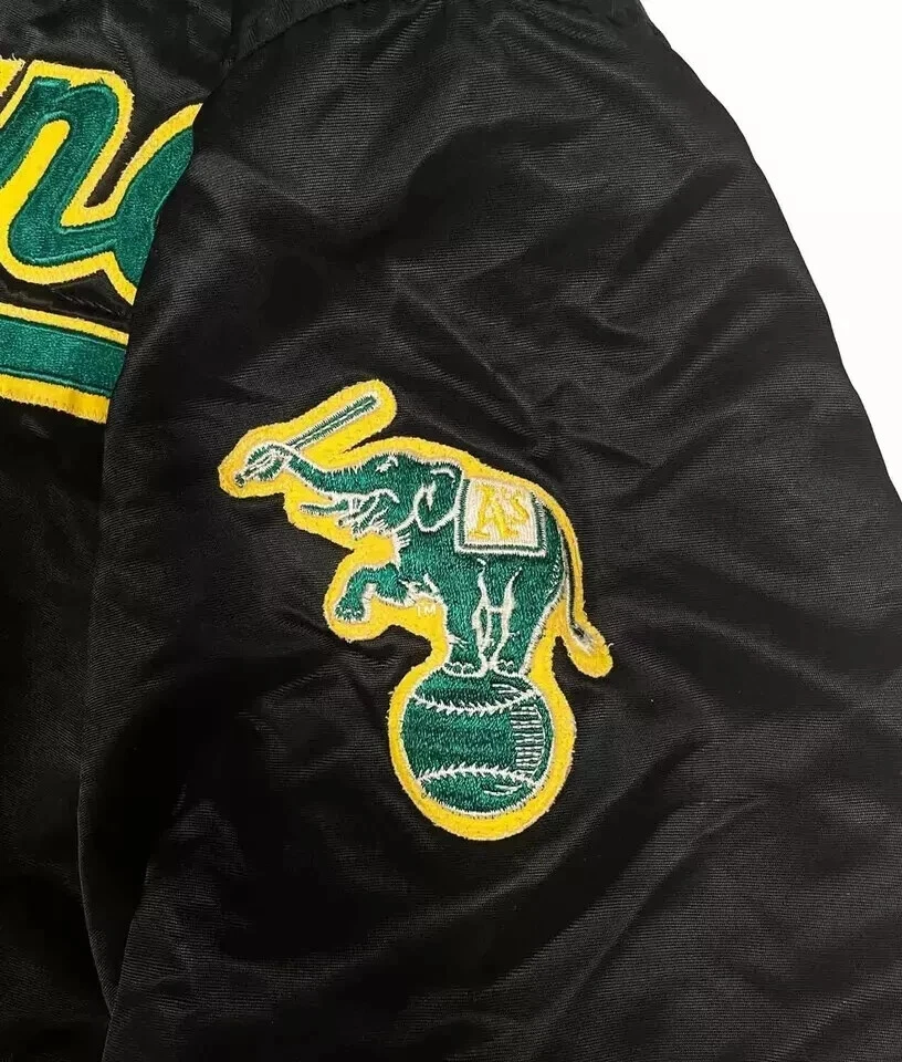 Men's Oakland Athletics 90s Full-Snap Black Satin Bomber Jacket Free Shipping