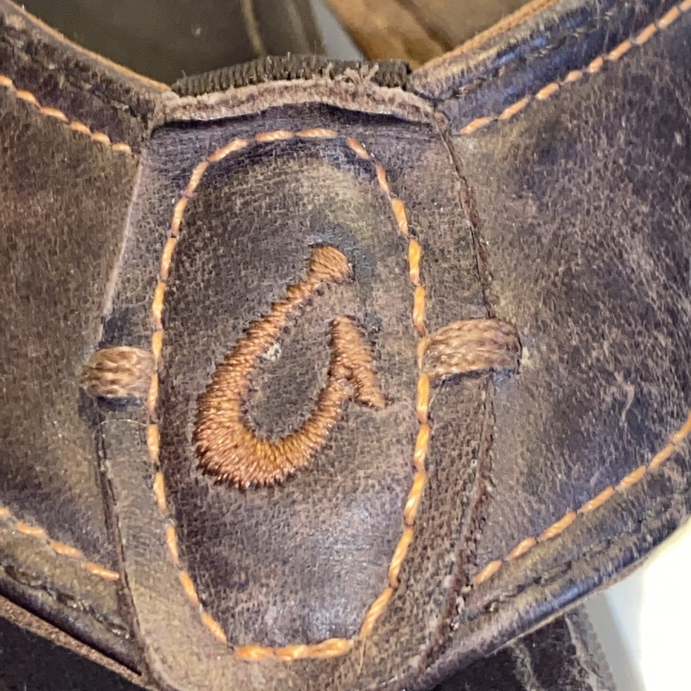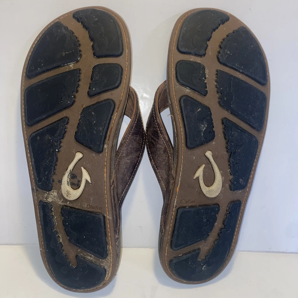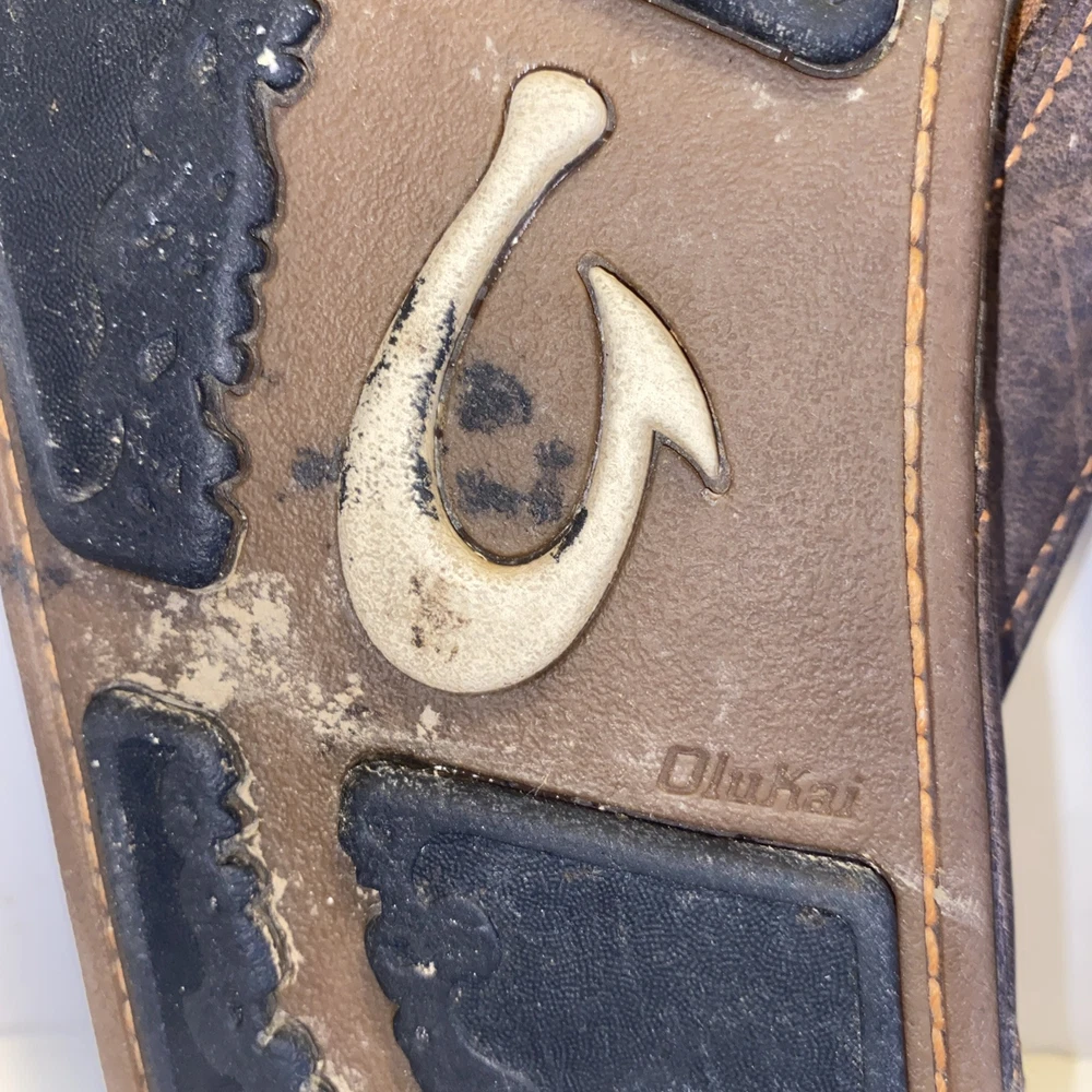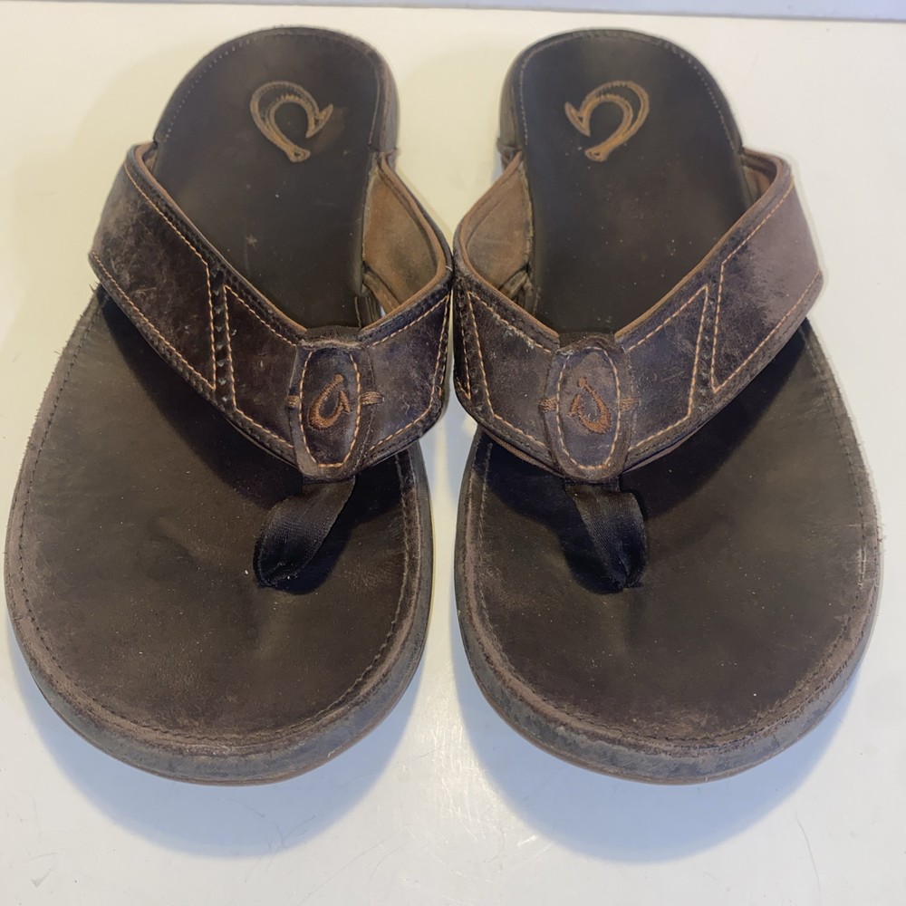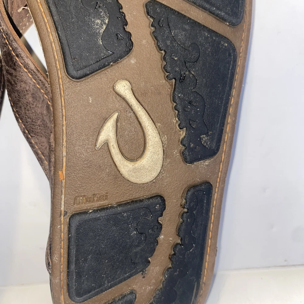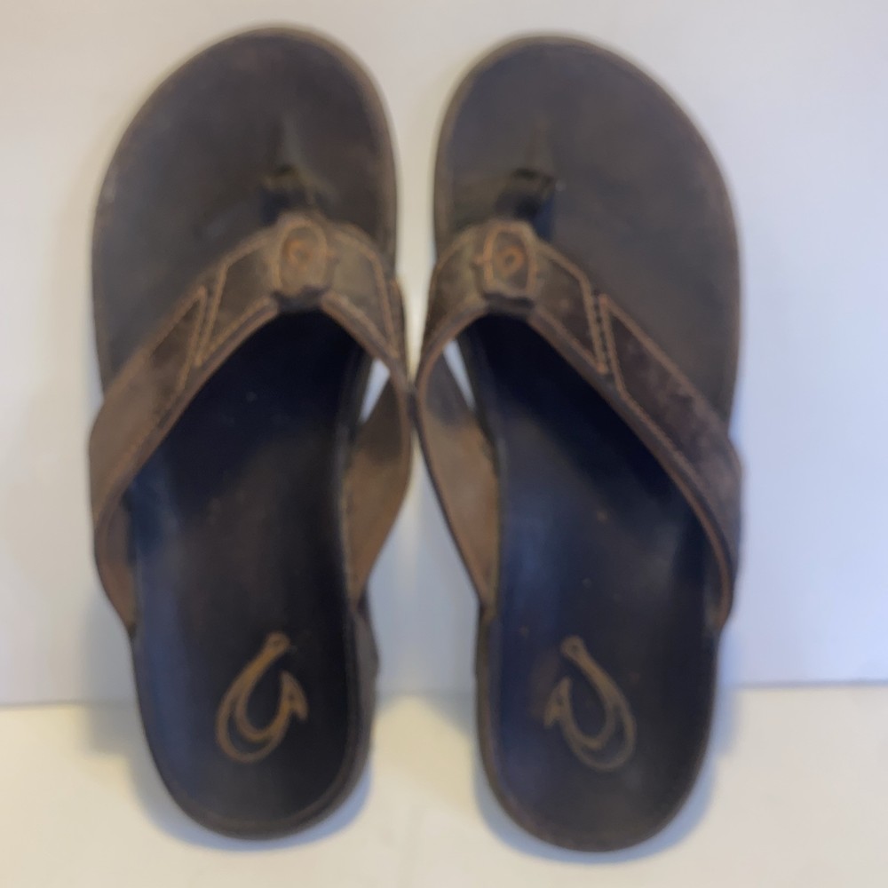 Men's Olukai Ohana Flip Flop Sandals Brown Leather US Size 12 *** please see all pics for condition.