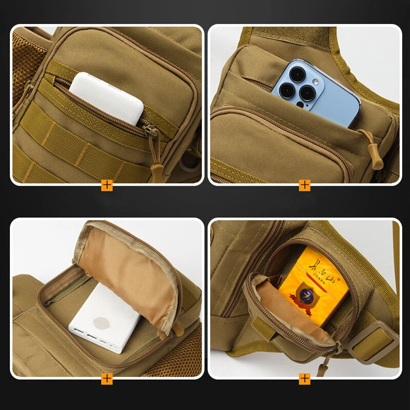 Description Size: 24*17*7CM Material: 600D Oxford Feature: Side mesh pocket for water bottle holder Occasion: Camping,Hiking,Trekking,Mountaineering,Climbing,Traveling,Trip,Tourist ,Gym,fitness,jogging,cycling,bicycle,running,riding School studnets etc. Carrying ways: Single shoulder backpack , chest bag,waist bag, corssbody bag, handbags