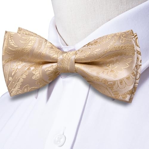 $ 13.03Bow Ties for Men Pre-Tied Pocket Square Lapel Pin Beige Pink Paisley Floral