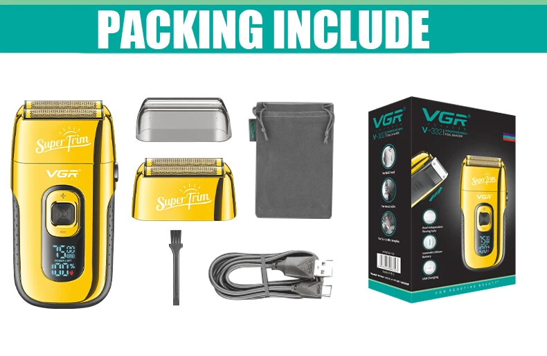 Models: V-332 Rated power: 5w Body Area: Face, Head, Hair, Body Motor Type: Rotary Waterproof: IPX7 gtin13: DOES NOT APPLY Charging time: 2 Hours UPC: DOES NOT APPLY Features: Adjustable Speed, Cordless, LED Display, Rechargeable, Cleaning System, Wet/Dry, Waterproof, Washable, Quick Charging Time Material: ABS, Stainless Steel MPN: Does Not Apply Brand: Unbranded Color: Gold Number of Heads: 2 Type: Shaver Kit Working time: 150 Minutes Head Type: Foil Head EAN: DOES NOT APPLY Model: Electric Shaver Power Source: USB Charging Department: Men