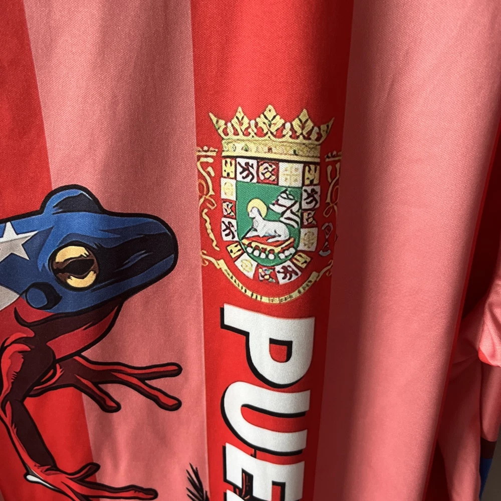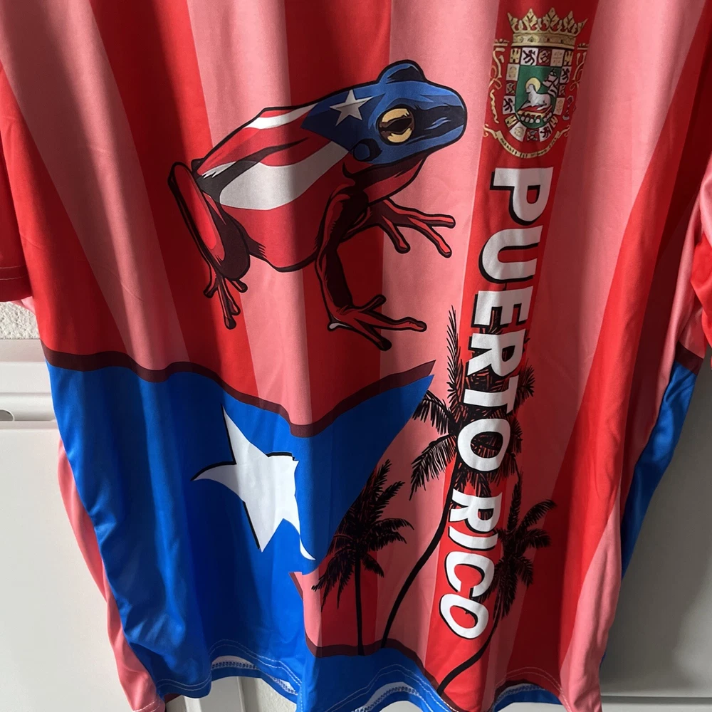 Show off your love for Puerto Rico with this stylish and comfortable t-shirt. Featuring a double-sided print with the Puerto Rico flag, and the infamous Coqui logo,this shirt is perfect for any occasion. Made from lightweight and breathable polyester material, this shirt is machine washable for easy care. The shirt is designed with a crew neckline and short sleeves, making it ideal for summer, fall, and spring seasons. In addition to the flag accents, this shirt also has a coqui logo print, adding a touch of uniqueness to your wardrobe. With its regular fit and stretchable fabric, this shirt is perfect for any man who wants to look and feel great. Whether you're a resident of Puerto Rico or just love the island's culture, this shirt is a must-have.