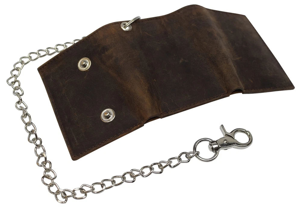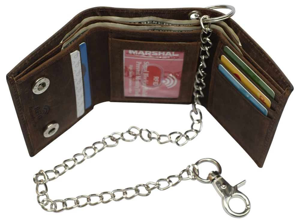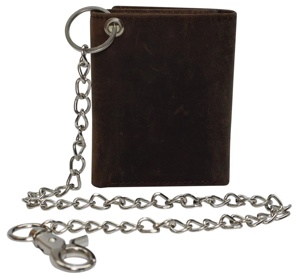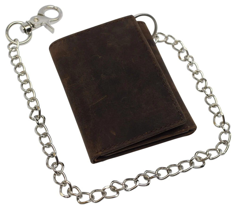 Description · Purchasing this wallet will help you avoid the pain of having your wallet stolen. The chain clips into your belt loop for the convince of our customers and enhances the style of your outfit. This beautiful wallet, is for men or women for everyday use, also for Biker, Trucker, and Motorcycle drivers. Delicate design and neatly stitched to ensure its longevity, Best quality, Premium cowhide leather makes this wallet looks very luxurious and durable, this Vintage distressed and unique design makes this wallet the right choice.. The RFID feature in this wallet really takes the safety of our customers to the next level. The aluminum lining that is embedded in this wallet, blocks the signals for radio frequency identification. This technology will prevent your credit card information from falling into the wrong hands. 7 Credit Card Slots, 1 ID Window, 1 Fast Access Card Slot in the back, 2 Bill Compartments, Snap Closure The finishing lining of the wallet is turned and stitched to enhance the durability of the wallet making sure the wallet lasts a long time to give you the most out of your money. 18" Long Stainless Chain including Key Ring & Claw Hook Heavy Thread with Quality Stitching Dimensions: 4.3" H x 3.5" L approx when closed