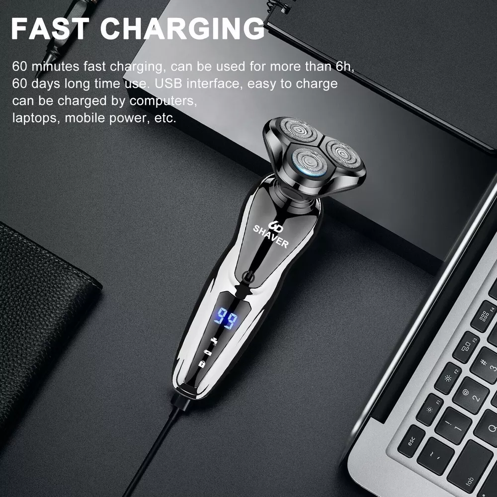 Motor Type: Rotary gtin13: Does not apply Type: Facial Shaver Features: Cordless, LED Display, Quick Charging Time, Rechargeable, Travel Size, Washable, Waterproof, Wet/Dry Head Type: 3 Head Rotary UPC: Does not apply Body Area: Face Brand: Unbranded Number of Heads: 3 Power Source: USB Charging Color: Black Department: Men