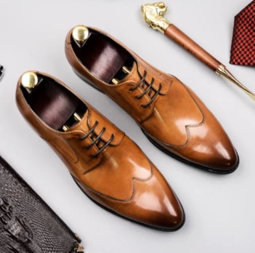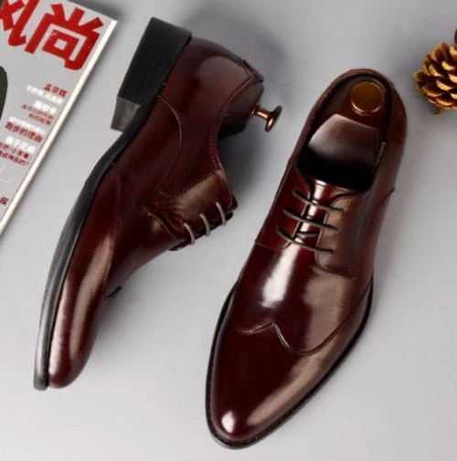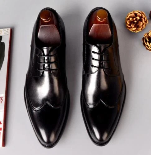 Men's Brogue Oxford Shoes Business Formal Zipper Cowhide Carved Leather Shoes