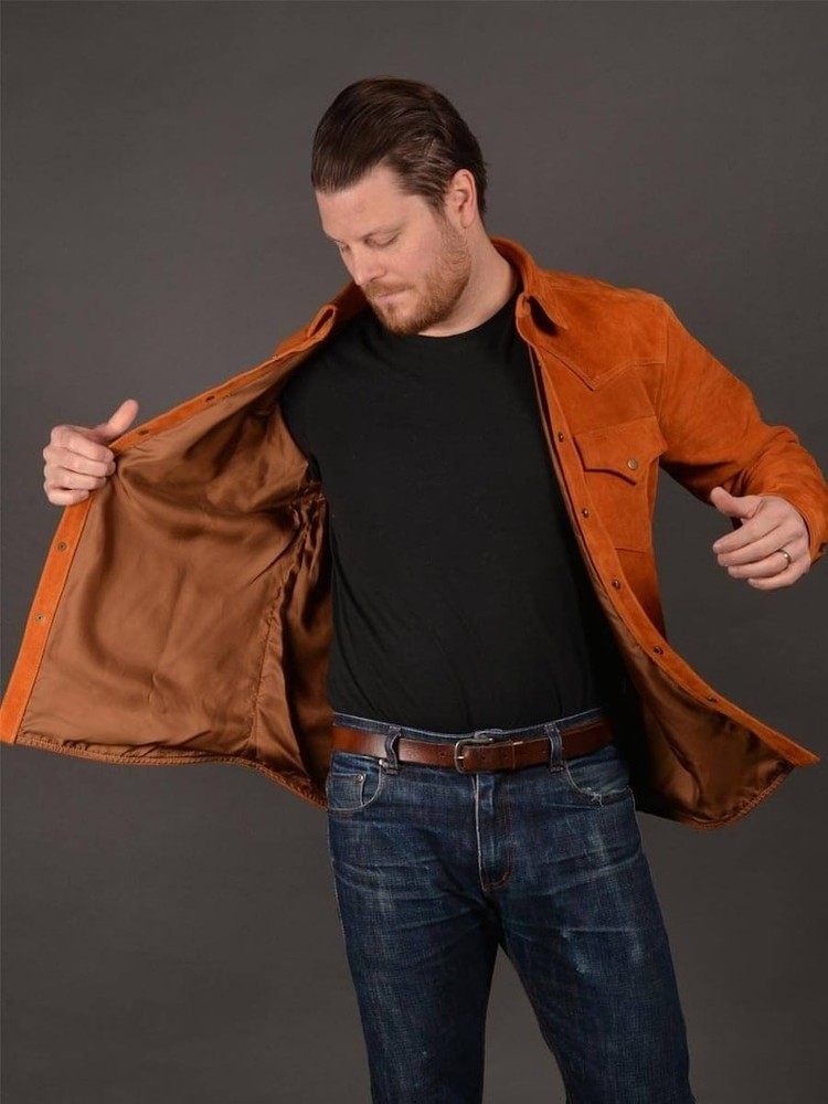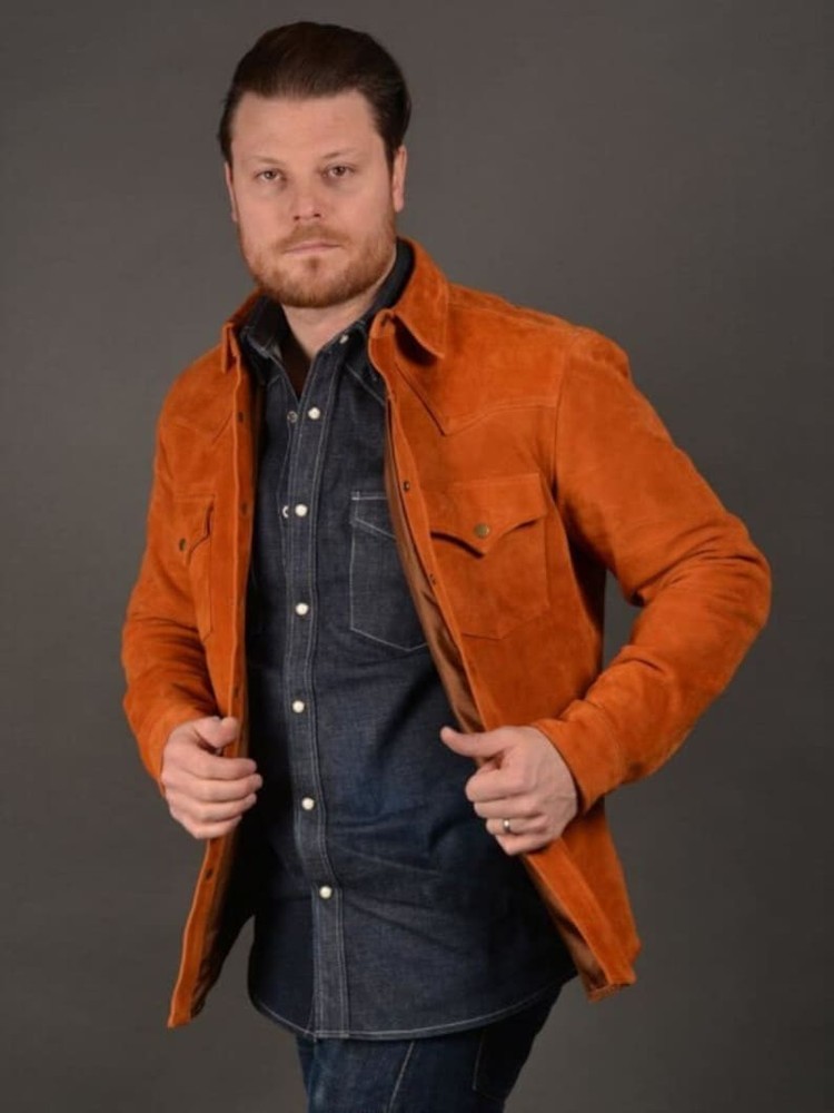 Men's Premium Brown Suede Leather Jacket Handmade Classic Stylish