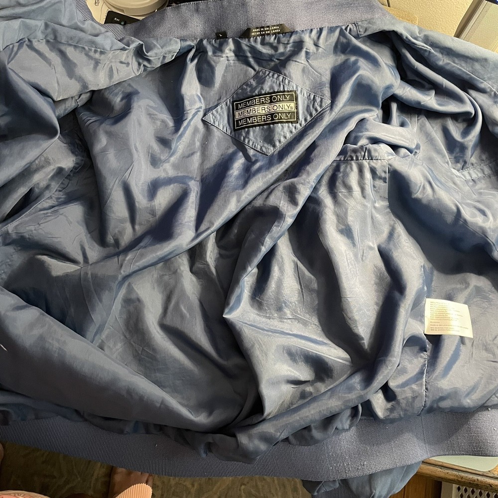 Members Only Bomber Jacket Size Large Color: Cornflower Blue Pockets Fully lined Banded waistband and cuffs Approximate measurements laying flat: Armpit to armpit 26” Length 27” Armpit to cuff 21” Preowned in very good condition Smoke-free home Offers accepted Check out my Ebay Store: https://www.ebay.com/str/kellysthriftedhanger