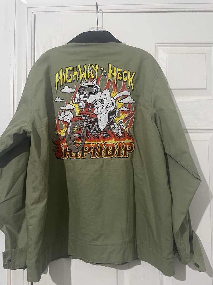 Green ripndip jacket. Highway to heck design. Preowned, but great condition!