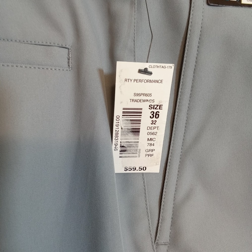 NWT. Elevate your work wardrobe with these versatile cargo performance pants from Rountree & Yorke. Crafted from moisture-wicking polyester material, these pants come in a classic fit with a straight leg style and flat front design. The gray color and solid pattern make them a timeless addition to any outfit, while the snap button and zipper accents add a touch of style. The pants feature cargo and slash pockets, making them practical for carrying essentials. They are machine washable, making them easy to care for. These pants are perfect for summer, fall, and spring seasons and are available in size 36 waist and 32 inseam. Add these pants to your collection for a comfortable and stylish option for work or casual outings. MSRP $59.50 G10 BOX - 1392
