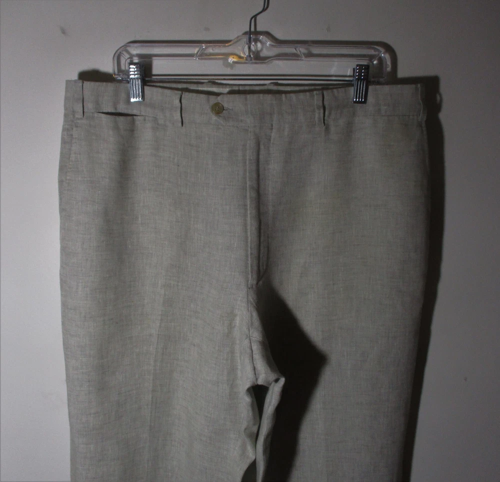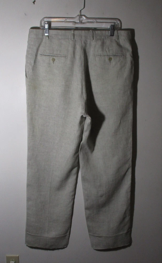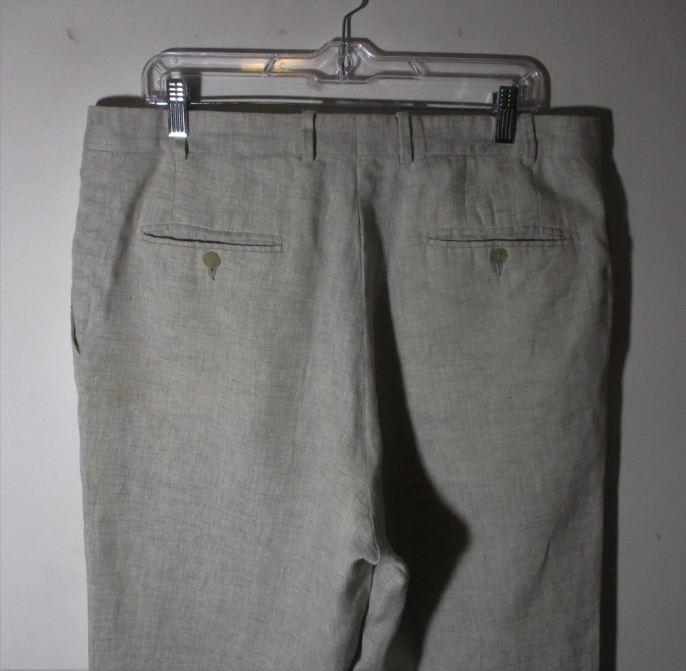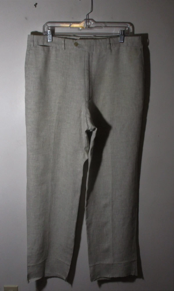 See my EBAY STORE at “SAMTPC53” to view 100’s more of my Men's Pants!!! Combine Shipping: (on multiple items you pay full price on heaviest item first and then HALF PRICE shipping on ALL other items. Men's Linen Pants. Brand: SARTORI ATELIER. Description: men's Linen SARTORI ATELIER casual chino pants, zipper, clasp and button on front, belt loops, small waist pocket on front, 2 front side pockets, 2 rear pockets, see pics. Color: Beige. Size: 36W, 31L (NOTE: pants have a 32" unfinished hem, please see measurements). Measurements: 36" waist, 31" inseam (Note: pants have a 32" unfinished hem), 12" rise. Material: Linen. Condition: Very Good condition.