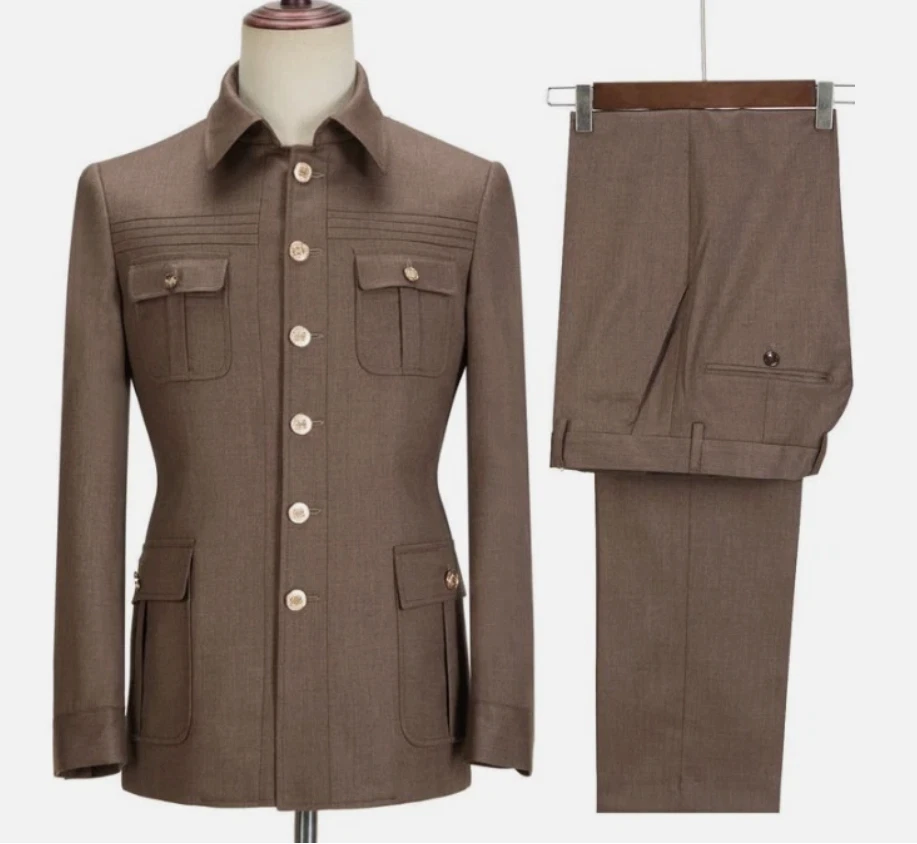 $ 1488.44Beige Mens Double-Breasted Peak Lapel Suit for Wedding Business Formal Wear