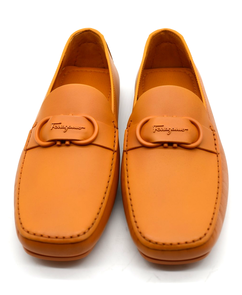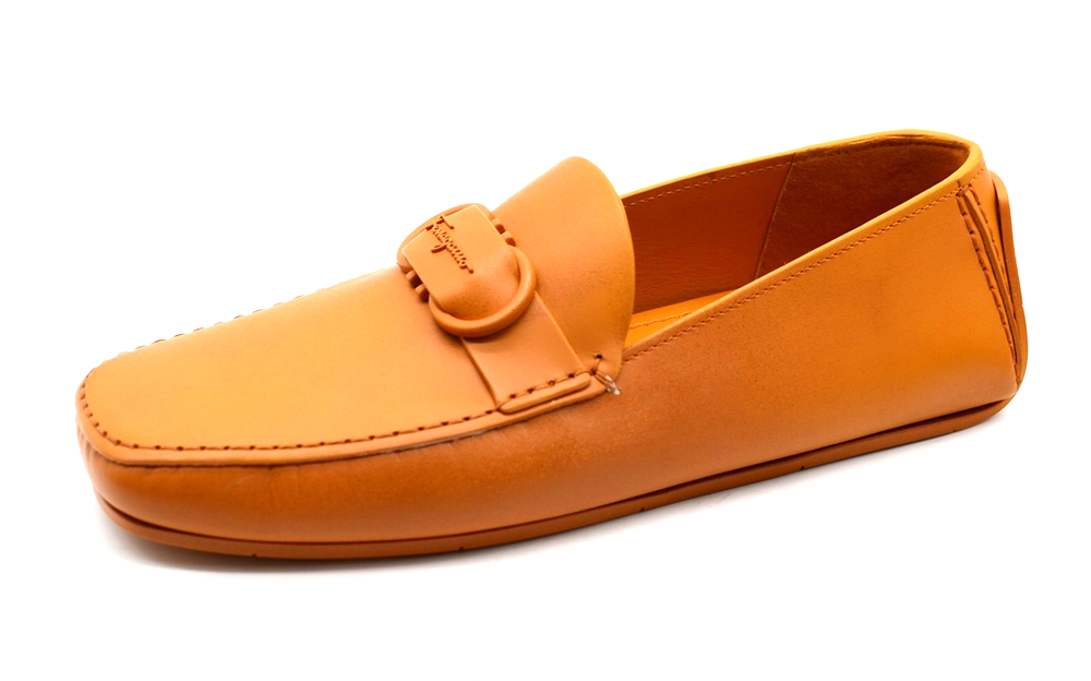 Men's Salvatore Ferragamo 'Gancini' Orange Leather Loafers Size US 8 - E