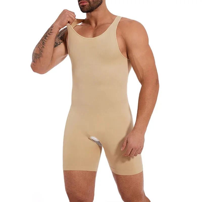 Description Size:S M L XL Fabric: 85%POLYAMIDE 15%SPANDEX Color: Black, Nude360°SHAPE YOUR BODY:Taking on our slimming body shaper for men, you will though away out of any bulge worries and become more confident. This shapewear for men will give your stomach compression to smooth your "man boobs" or "beer belly",tighten your thigh to be slimmer, flat your waist fat,minimize your gynecomastia and slim your chest. SEAMLESS MENS SHAPEWEAR: The bodysuit shapewear for men adopts 360-degree seamless integrated molding, wearing no trace, light and zero bondage, according to the ergonomic light pressure design, fit the body curve. Our mens tummy control compression shaper is made of ultra stretchy material,suitable for all kind of body shape.Our compression shirts for men is undetectable when you wear shirts, t-shirts or suits with it. ONE-PIECE OPEN CROTCH BODY SHAPER SHORTS:Our leotards bodysuit for men is one-piece vest four corners underwear.This fashion bodysuit vest not only can slim your belly, but also tighten your thigh fat.This boxer briefs body shaper has open crotch so that can make you more convienent to go to bathroom.Deep U-neck design will be a super good partner under shirts,hoodie or suits, it can prevent the embarrassment of underwear exposure. STRONG COMPRESSION IN BELLY: This mens tummy shaper has chest and waist special knitting technology which has high pressure to effectively tighten the waist, abdomen and chest, flatten all your bulge.The mens jumpsuit shapewear style design slim thighs, widened foot braid effectively prevent rolling eversion. ULTRA COMFORTABLE SHAPEWEAR: This basic mens waist shaper can be wore all day underneath clothing without uncomfortable,shaping you a super charming body curve.This butt lifting shapewear for men will company with you in any improtant occasion( e.g. wedding,meeting, dating,exercising or travelling),give you brave to do anything you want to do,make you become more confident. Size Information
