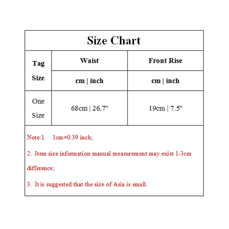 Specifications: 100% Brand new and high quality. Size:waist:68cm,front size:19cm Color: red,black Material:spandex Waist Type: Mid Pattern:solid color Season:spring,summer Note: 1.Due to the light and screen difference, the item's color may be slightly different from the pictures. Please understand. 2.Please allow 2-3% error due to manual measurement.Please make sure you don’t mind before you mid. 3.Size doesn’t fit all.Please carefully check size chart and select the size based on your real size. Care Instructions: Wash before wear Cold gentle machine wash Do not bleach Do not tumble dry Drip dry Package:1 pcs men brief Size Chart Tag Size Waist Front Rise cm | inch cm | inch One Size 68cm | 26.7'' 19cm | 7.5'' Note:1. 1cm=0.39 inch; 2. Item size information manual measurement may exist 1-3cm difference; 3. It is suggested that the size of Asia is small. (1) We will send your items within 5 working days (except weekends and Chinese public holidays) (2) It is recommended that you choose Speedpak shipping. Usually economical international packages take 12-30 days to arrive, but Speedpak shipping can arrive within 7-12 days. Please pay for your items together, we will send your items in one package (we may add free gifts), please do not pay for your items one by one. About us If you are not satisfied with our products or services, please contact me, do not give us negative or natural feedback, we will definitely give you a satisfactory solution. (I believe there will be no problem with communication) Contact us We will reply most emails within 24 hours on working days. If you do not receive a reply from us, please resend your email, because sometimes it may be due to Internet problems that we did not receive your message. If you need to buy in bulk, please contact us by email, wholesale is always welcome Bulk purchases can get more discounts Welcome to buy wholesale at any time. Wholesale please contact us by email View our other projects For more exquisite products, please browse the store selection