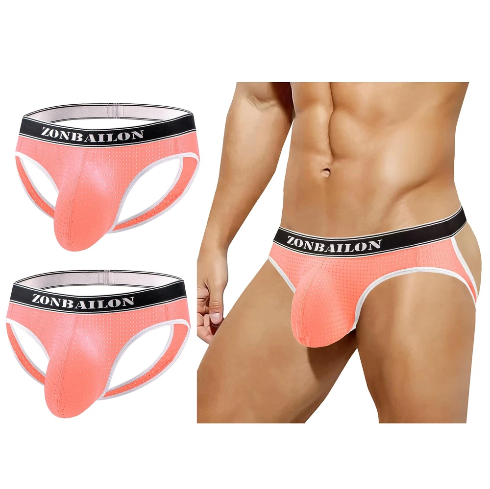 About this item 【MESH FABRIC】This men's jockstrap underwear is made of 80% nylon and 20% spandex, soft and high elastic. There are air holes for breathable, which make it be a MESH jock straps for men, lightweight male jockstrap underwear sexy 【UNIQUE DESIGN】This hot athletic supporter underwear for men is designed with contour pouch, enough space and support. This back hollow out mens thong jockstrap is perfect for show your hip curve and suitable for butt toning training. Low rise gym jockstrap briefs features elastic rubber waistband with letter printing in contrast color elevates its appearance. No visible jock strap men's undie is good choice for gym and workout, increase comfort and reduce embarrassment when do sports 【INTIMATE DETAILS】This tagless man sculpting thong won't pinch or bind, make sure comfort. This sexy jock straps male underwear with two straps in two side provide necessary support and keep everthing in place. Elastic low waist design of this invisible men novelty stretch thong panties is easy for pull on and take off 【WASH CARE】Machine or Hand Wash Cold, Do Not Bleach 【WAIST SIZE】5 Sizes of this hot men briefs available. M=32-34'', L=36-38'', XL=40-42'', XXL=44-46'', 3XL=48-50''
