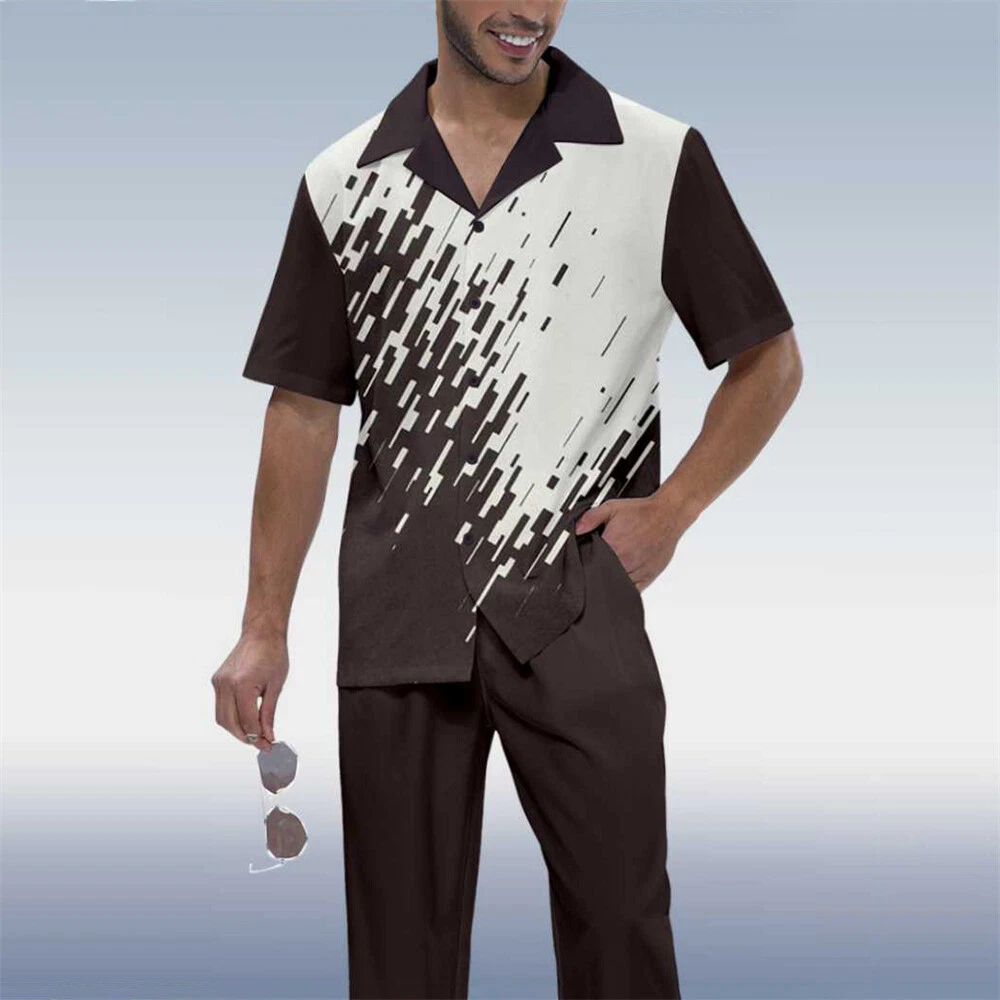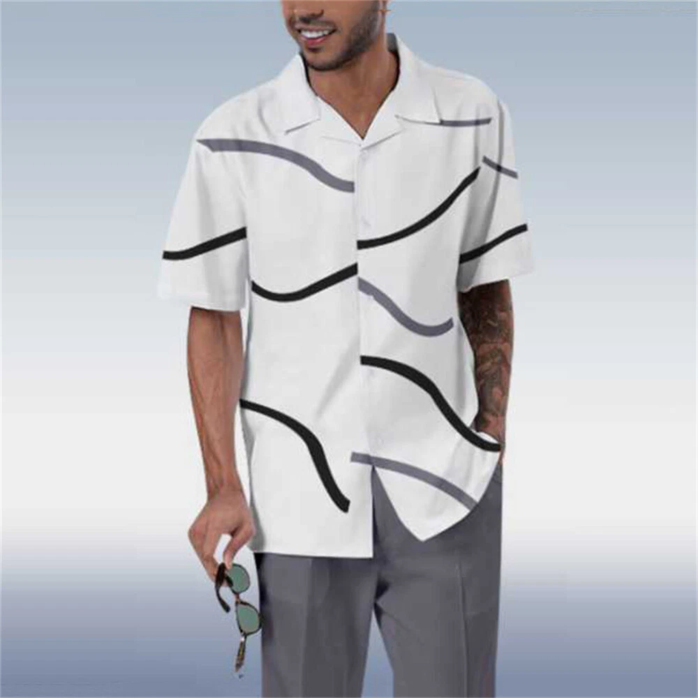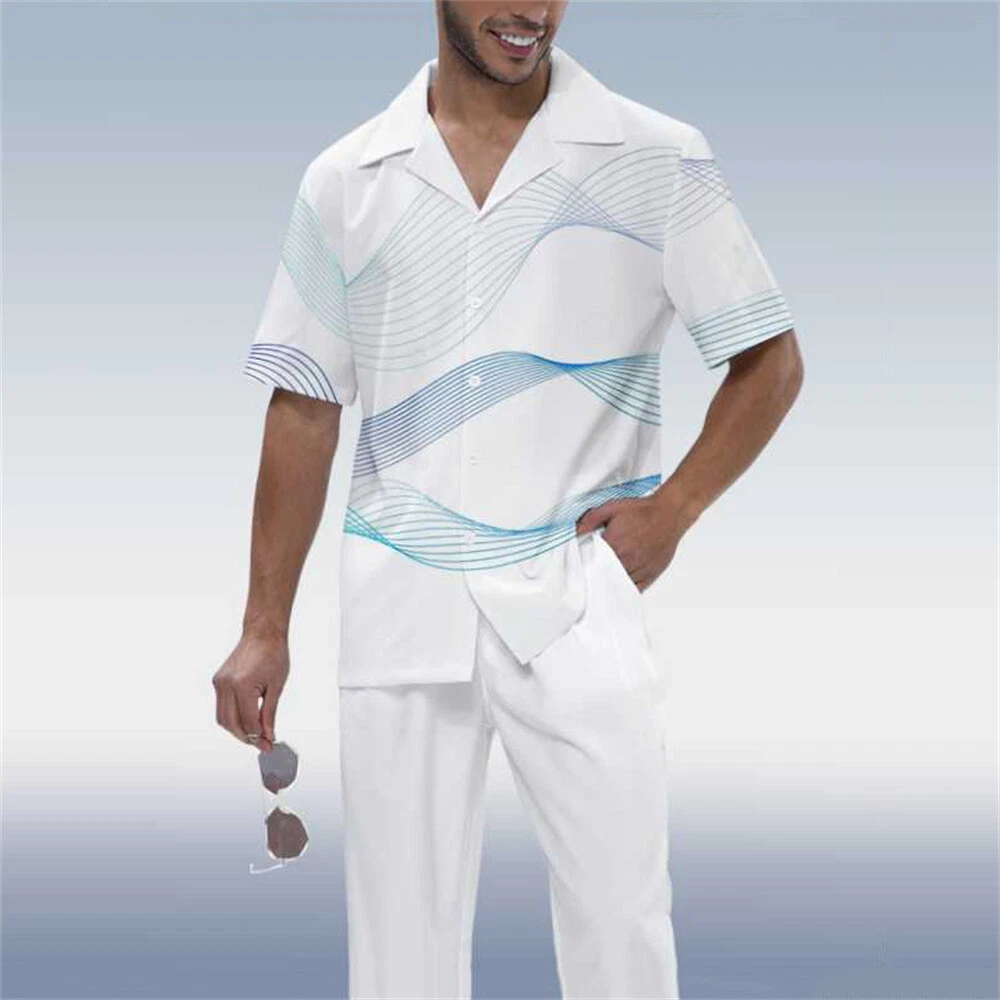 Men's Short Sleeve Tracksuit Set - Button Shirt & Pants Outfit
