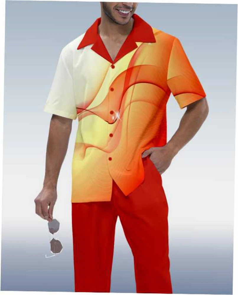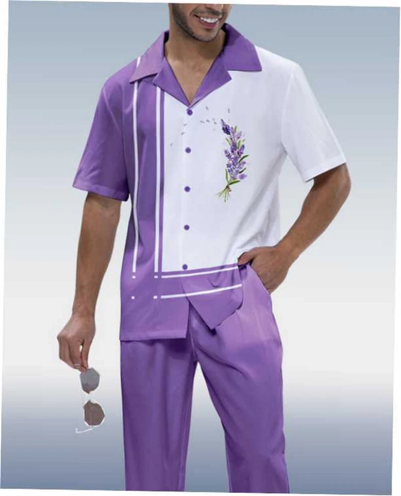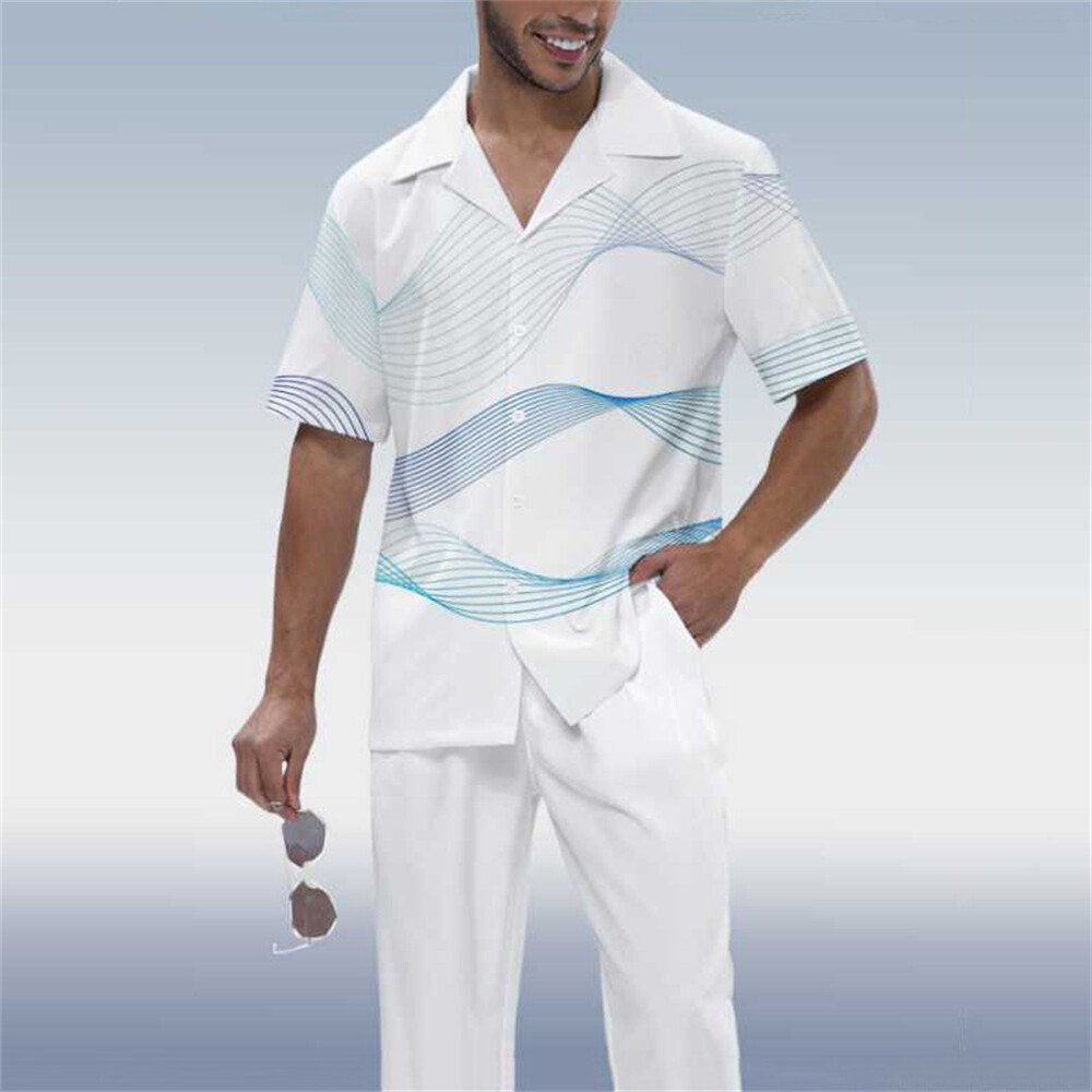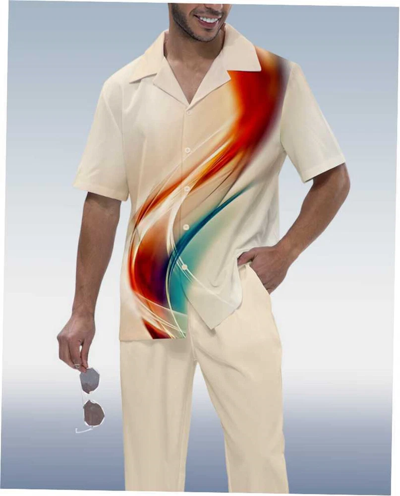 Men's Short Sleeve Tracksuit Set - Button Shirt & Pants Outfit