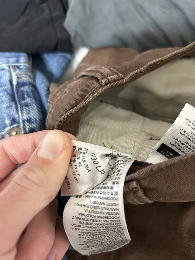 Good condition. Volcom shorts size 30 and 32. Urban pipeline shorts 30W. Hurley shorts 32. Vans shorts 30. Lucky brand jeans 34x30. Levi’s pants 30x30. Dickies shorts 34.