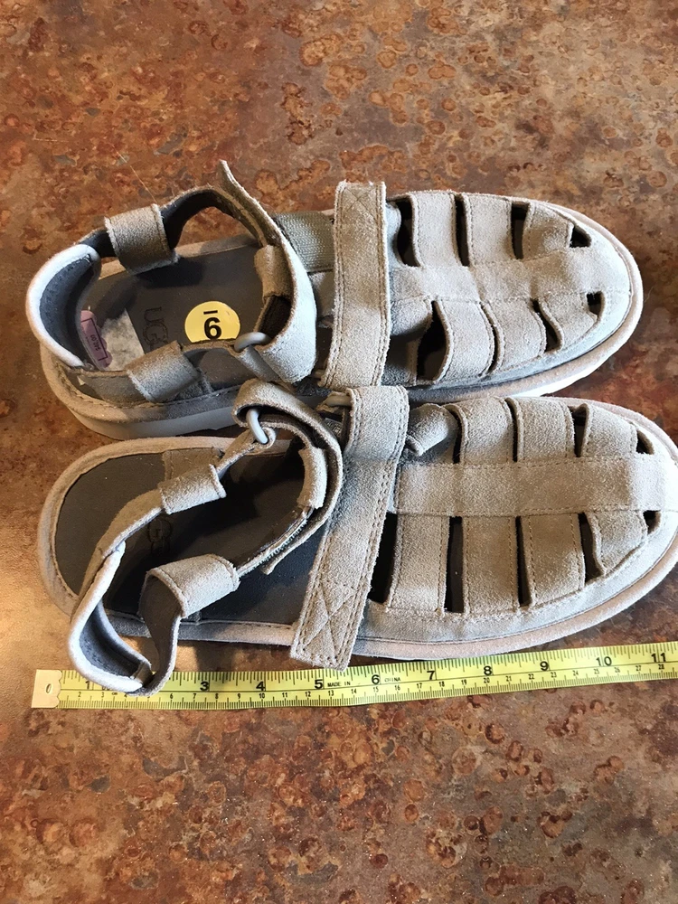Men’s Size 8 Women’s Size 9 UGG Gray Suede Dune Fisherman Strap Comfort Sandals. Adjustable straps. Treadlite by UGG. New without box. Comes from a clean, smoke free home.