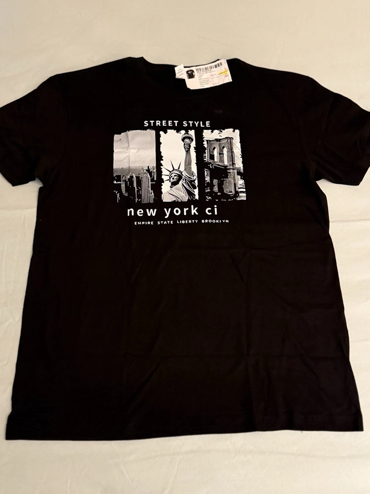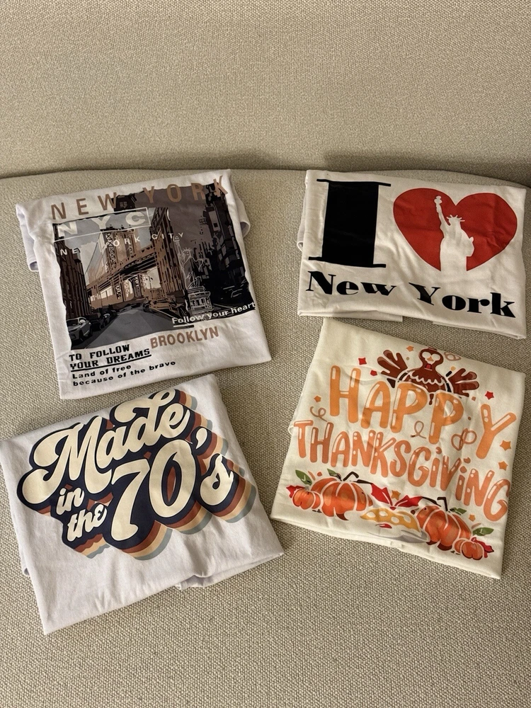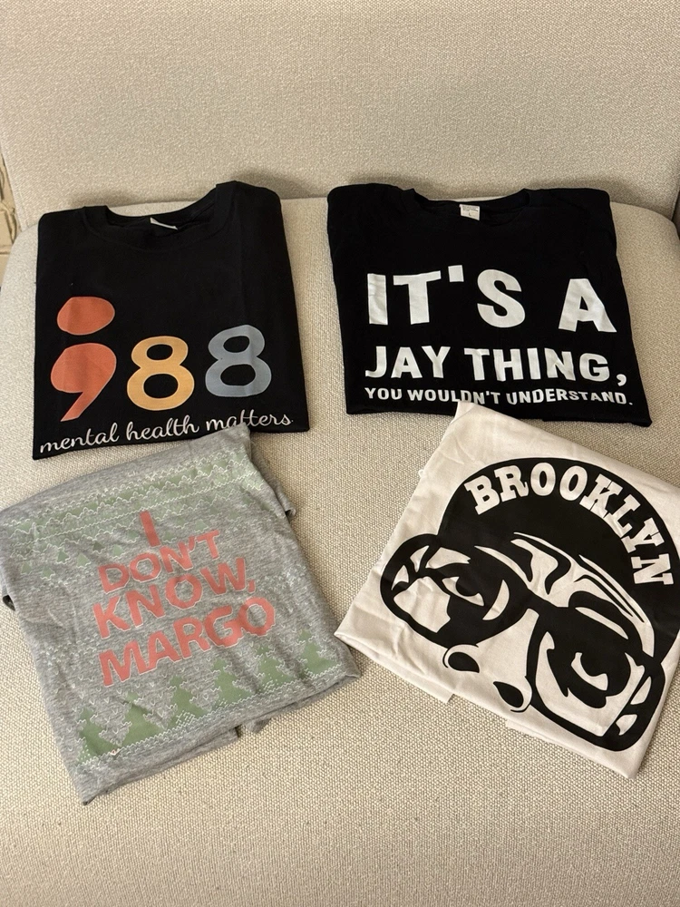This bundle includes 12 men's size large t-shirts in assorted brands, featuring graphic prints with a variety of themes such as nature, movie, USA, and rock. The t-shirts have short sleeves, a crew neck, and are made of cotton material. They are machine washable and designed for regular fit. Each shirt is personalized with a happy character and can be mixed and matched for a discounted price of 15% off per 3 t-shirts. Handmade in the United States, these t-shirts offer a colorful and diverse selection for men looking for unique and stylish clothing options.