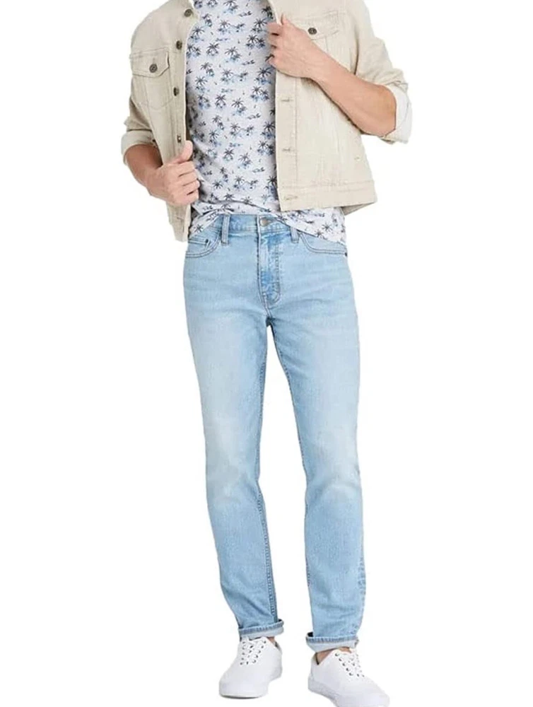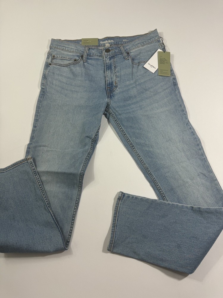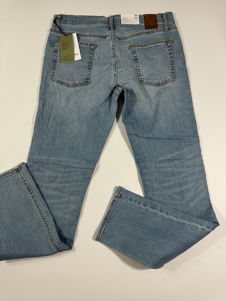 Elevate your style with these Goodfellow & Co Skinny Fit Jeans for Men in Light Blue. Featuring a 5-pocket design with zip and button closure, these jeans are made of 99% Cotton and 1% Lycra, making them comfortable and durable for any season. The mid-rise waist and slim fit offer a modern look, while the 34x34 inseam ensures the perfect length. These jeans are perfect for any occasion, whether it's a casual day out or a night on the town. Add these jeans to your wardrobe today and elevate your fashion game.
