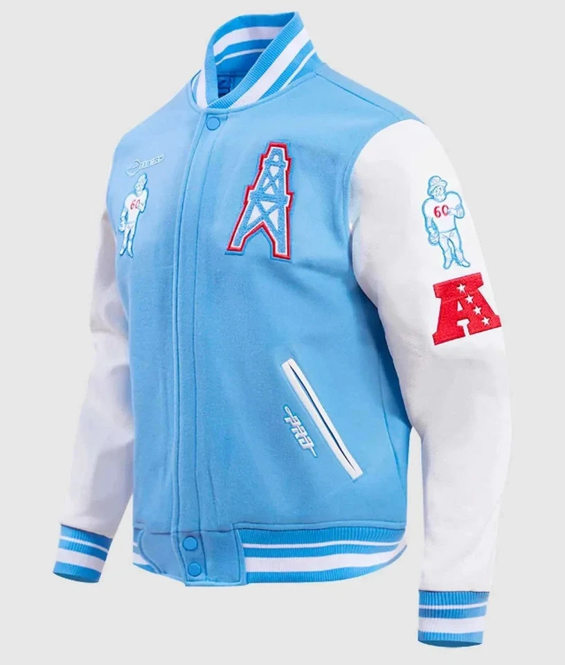 Men’s Sky Blue & White Wool & Leather Varsity Letterman Jacket-Free Shipping Upgrade your style with this high-quality men’s varsity jacket , crafted with a wool body and genuine leather sleeves for durability and a premium look. Color & Design Sky Blue & White combination with rib-knit striped collar, cuffs, and hemline for a stylish finish. Key Features Stand-up rib-knit striped collar Three snap-button front closure Soft viscose lining for comfort Two side leather-trimmed pockets + two inner pockets Full-length leather sleeves with rib-knit cuffs Varsity-style applique logos/letters stitched on front, back, and sleeves Fine quality stitching and durable construction Fit & Occasion Regular fit, perfect for casual outings, college, sports, or everyday wear. Payment & Shipping Payment via PayPal, Credit Card, or Debit Card Ships within 7–10 business days Standard shipping (2–6 business days) Items shipped to the address on file with eBay — ensure it is correct Returns & Satisfaction 30-day return policy Contact us directly via eBay message for any issues Your satisfaction is our top priority