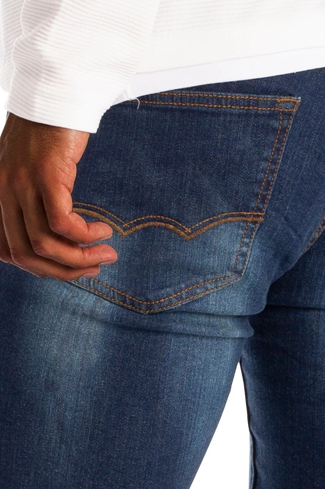 Material: Cotton, Spandex Leg Style: Slim Fit: Slim Vintage: No Closure: Zip Accents: Button, Logo, Zipper Pattern: Solid Type: Jeans Rise: N/A Season: Fall, Spring, Summer, Winter Fabric Wash: Dark Fabric Type: Denim Theme: American, Biker, Classic, Countries, Modern, Outdoor, Retro, School, University Suspender Buttons/Belt Loops: Belt Loops Country/Region of Manufacture: Bangladesh Size: 30 Size Type: Regular Department: Men Features: Belted, Comfort, Stretch Distressed: No Pocket Type: 5-Pocket Design, Coin Pocket Garment Care: Machine Washable Product Line: N/A Model: N/A Inseam: 30 in Style: Skinny Brand: Alamo