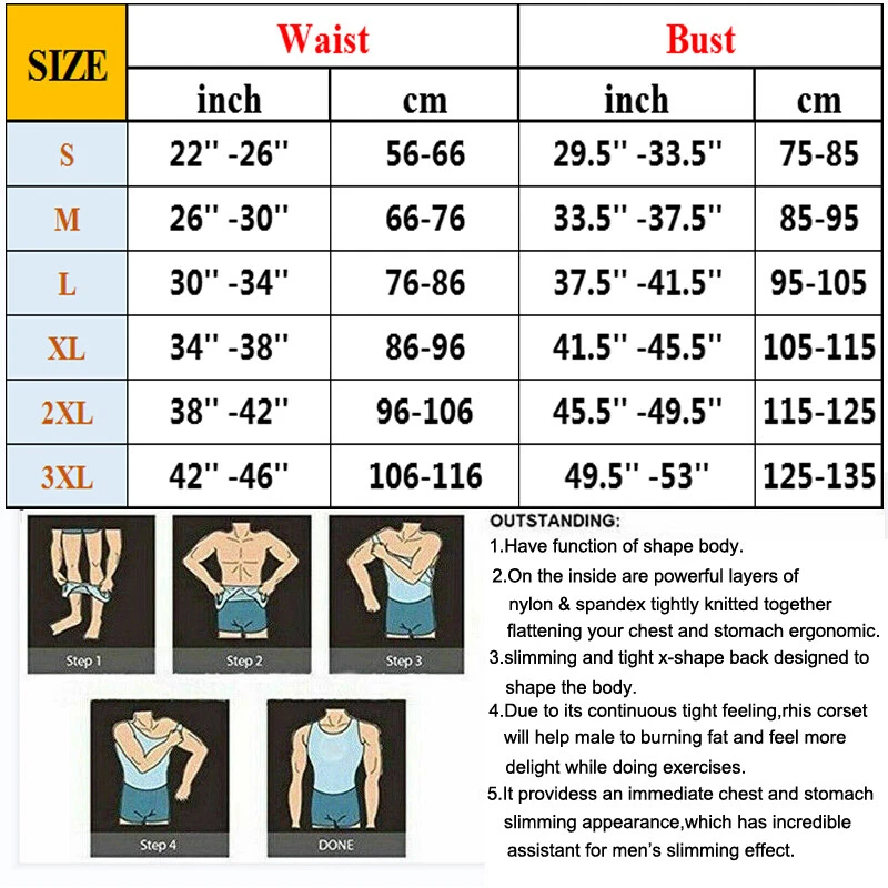Men's Shaper Men's control tops Men's waist trainer top Men's waist trainer belt Men's control underwear Men's clothing Ankle Brace Compression Socks Back Brace Knee Brace Why Buy From us Free Shipping Fast Shipping Within 24 hours 30 Day Money Back Guarantee Trusted Store Satisfaction Guarantee Secure Shopping With Confidence Best Price and Good Quality Professional Customer Service Hot Sale Listing Items Description Breathable and Comfortable: Mens shapewear is made of 90% nylon and 10% spandex, offering excellent elasticity and breathability. Tank top men not only fits snugly to the body, providing effective compression, but also efficiently wicks away sweat, keeping you dry and comfortable. Efficient Shaping: Gynecomastia compression men utilizing 160D elastic compression, effectively tightens key areas such as the chest, abdomen, and back, sculpting a more balanced physique. Beyond enhancing appearance, it provides back support, effectively reducing issues like hunchback and lower back pain. Versatile Wear: Compression tank top men not only serves as an undergarment beneath other clothing but also seamlessly pairs with various styles, be it casual, formal, or athletic. Its versatility makes it an ideal choice for daily wear and well-suited for fitness activities like running and weightlifting. All-season Comfort Shield: Men compression shirt is suitable for all seasons, featuring advanced seamless cutting technology to ensure a comfortable fit. Its excellent moisture-wicking and quick-drying capabilities effectively keep the body dry, allowing you to feel comfortable and at ease whether in the scorching heat of summer or the chilly winter. Sports Support: Mens compression tank tops provide extra support during exercise, reducing muscle vibration and enhancing performance, allowing you to feel comfortable and unrestricted during workouts and outdoor activities. The compression design also promotes blood circulation, relieving muscle fatigue and soreness. Shipping Payment Return Policy Feedback About us Shipping 1.We ship all of our items within 1 business days from US warehouse .(exclude holidays and weekends) after the payment being cleared. 2.It usually takes 1-5 working days for the delivery. But, the transit time is highly depend on Postal Service after we dispatched.If you have any questions about your shipping, please do not hesitate to contact us .Our customer service will try our best to resolve the issue for you. CAUTION: Please kindly note that we dispatch the item(s) by buyers' eBay registered address. Please provide your correct delivery address before you send the payment. It's very important for us to avoid any loss caused by the wrong address, and then you could get the item smoothly. Payment 1.We accept Paypal, Paypal Credit, credit or debit card, Apple Pay, Google Pay payment. 2.Payment must be made within 48 hrs of the auction end time. 3.Import duties, taxes and charges are not included in the item price or shipping charges. These charges are the buyer's responsibility. Return Policy 1.We provide 30 days return upon the buyer received the item. It must be in good condition and you will undertake the returned shipping cost. 2. We will offer replacement or refund for all DEFECTIVE items (not including damage resulting from accidents / abuse / misuse / improper care), but a photo is needed for our reference beforehand and should be reported to us within 7 days from purchase date. 3.All items are brand new and have been passed the quality check. All are packed in a good condition before item dispatch. Feedback 1.Any problem after receiving our goods,please contact us before leaving Neutral/Negative feedback.We promise to help you solve it asap,and make you feel satisfactory absolutely. 2.Please DO NOT leave negative feedback without asking for help. Please do not leave negative or neutral feedback if you haven't received item in 30 days, because we have mentioned the shipping time repeatedly. About us We maintain high standards of excellence and strive for 100% customer satisfaction! Feedback is very important to us. We request that you contact us BEFORE you give us neutral or negative feedback, so that we can address your concerns satisfactorily . It is impossible to address issues if we do not know about them! On Feb 18, 2025 at 23:23:58 PST, seller added the following information: