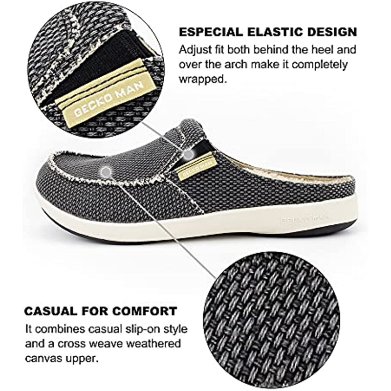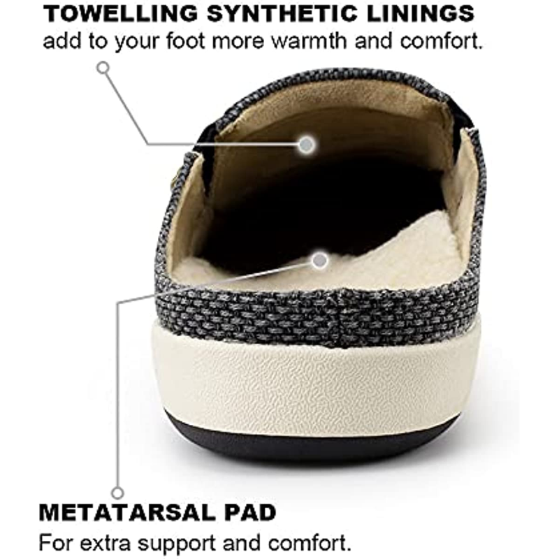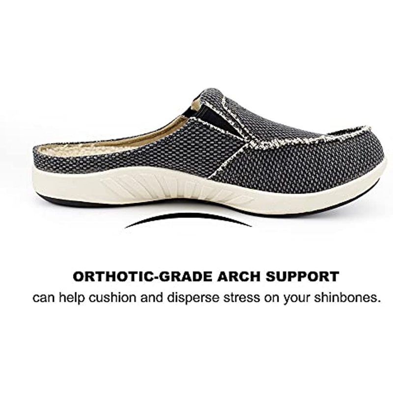 [All-Day Foot Care] : Skin-friendly, moisture-wicking velvet lining and plush insoles for a comfortable fit, whenever you want to relax, wear these home slippers to completely relax your feet after a hard day of driving and work. [ Fashion style ] casual cave shoes, weathered canvas upper. An everyday style you can rely on. These handy one-pedal slippers have a casual fabric upper with frayed detailing. Designed for all occasions. Whether indoors or outdoors, the stylish look makes it comfortable to wear all day long. [Unique Arch Supp ort Design] : This hole shoe features a corrective insole that measures biomechanically accurate insoles with arch support and deep heel pads to align the foot, reduce foot pain and control foot movement. Orthopedic slippers can help relieve pressure and pain caused by flat feet. Relieves plantar fasciitis (heel pain and heel spurs), Achilles tendonitis and foot pain [100% Satisfaction Guarantee] : If you are not satisfied with this slipper for any reason, our return policy allows you to return eligible items for replacement within 30 days of receiving your package.