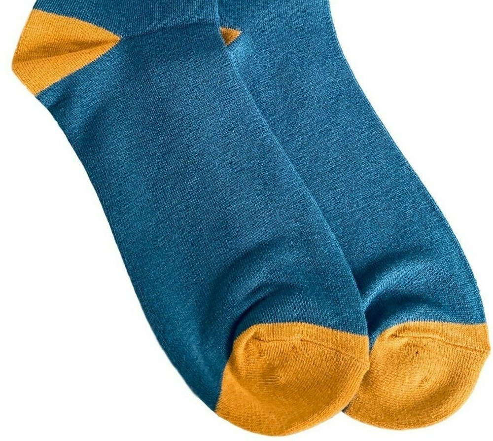 Men's blue and mustard yellow coloured socks with a Fox print. Excellent quality, super soft and stretchy bamboo / cotton blend fabric ( 54% Bamboo, 22% Cotton, 16% Polyester, 6% Nylon, 2% Elastane ) One size ( Mens UK Shoe size 8 - 12 ) New with tags and FREE UK postage.