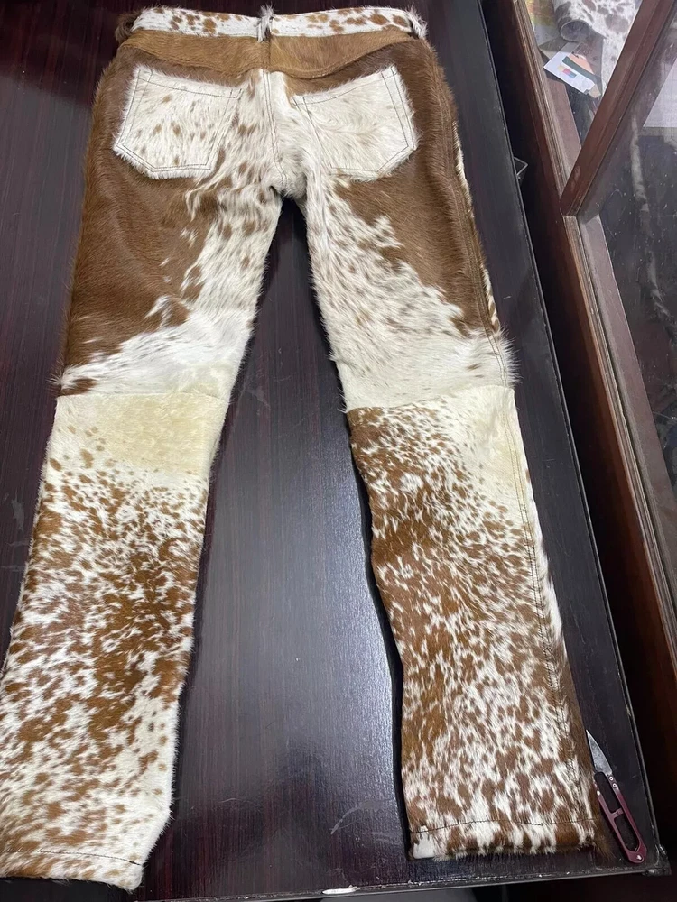 Men's New Natural Leather Pant Genuine Soft Cowhide Causal Wear Pant Leather Jeans Colours Pattren may vary slightly as it is 100% original Natural Cow Hide Skin. External : Real Cowhide Skin Front Internal : Polyester Lining Pockets : Two Front Pockets Two Backside Pockets We Accept Return If Any Issue with our Product Feel Free to contact us. NOTE: Colours Pattren may vary slightly as it is 100% original Natural Cow Hide Skin. NOTE: Colours may vary slightly from original due to individual monitor colour settings and/or light conditions when photographed. Colours Pattren may vary slightly as it is 100% original Natural Cow Hide Skin. Size : Please select your jacket Size according to the size chart in Images Gallery. If you choose to have a Custom (Made-to-Measure) jacket, please email us your measurements. Delivery: We'll deliver your order via DHL / FEDEX / USPS at your door step. Returns & Exchanges: Hassle Free Returns and Exchanges. Colours Pattren may vary slightly as it is 100% original Natural Cow Hide Skin.