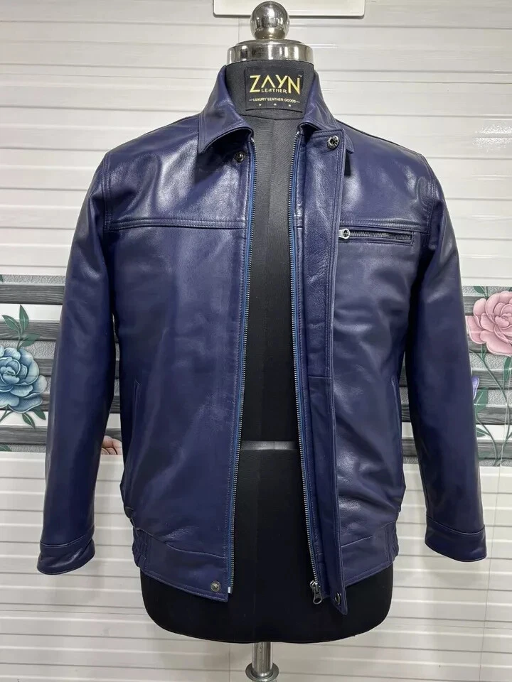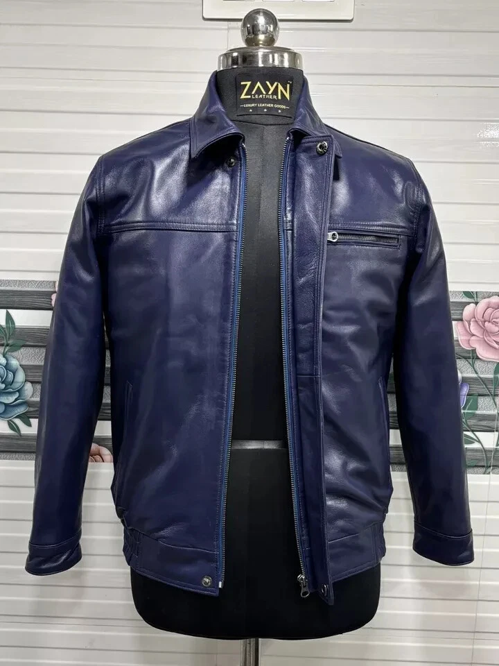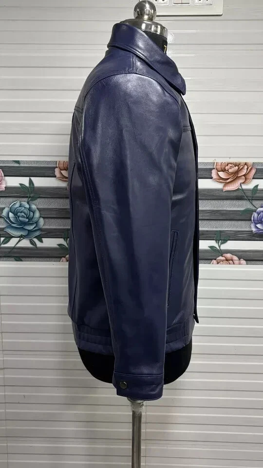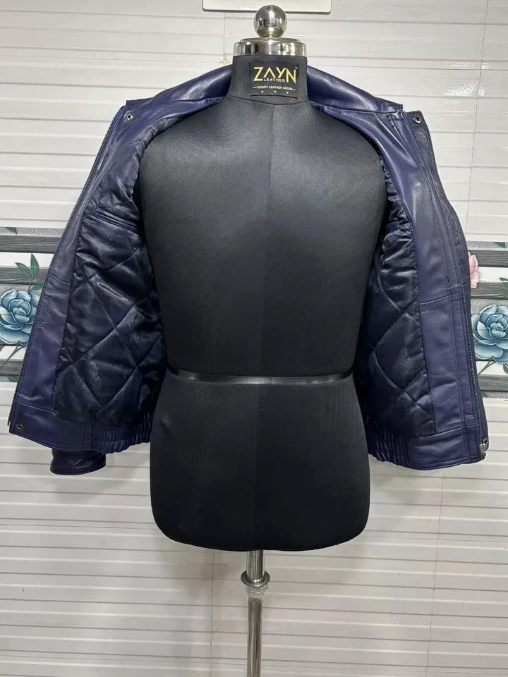 Abez Leather Fashion Item Details Men's Soft Lambskin Leather 70's Classic Bomber Jacket Retro Style Blue Jacket Stay warm and stylish with this men's Blue Bomber jacket, expertly crafted from 100% genuine lambskin leather. Designed for the winter season, this premium jacket offers a perfect blend of durability, comfort, and fashion. Elevate your winter wardrobe with this high-quality lambskin leather Bomber jacket—available in all sizes! Size and Color Consult the provided size chart in the image to ensure a perfect fit. Follow the instructions for accurate measurements. Unsure about sizing? Send us a message with your body measurements, and we'll tailor your jacket accordingly. Enjoy our FREE CUSTOMIZATION service to meet your specific requirements; simply get in touch with us. Explore a variety of COLORS by contacting us for your preferred choice. We Also Accepted Bulk Orders. Customize / Tailor Made Leather jacket for Men & Women in Sheep / Lamb antique leather jacket Customize your order to meet your specific requirements. Dear Customer, Please answer the below questions in order to serve you better : Shoulder = Chest = Arms = Waist = Sleeves = Tummy = Length of jacket = HIP = Actual height = Shipping Information Color of actual product may vary due to photography/light effects & also due to computer screen resolution and color settings. Buyer will bear custom-duty/Import duty charges. Orders are shipped using DHL or FedEx, occasionally utilizing India Post based on location and service accessibility. The Accessories of the Leather item such as Button, Zippers, & color might differ due to material availability in the market but we use Premium Quality only. Return Policy If you find that product is not as per product detail, we will accept a return for Item within 30 days of receiving item in original condition as it was sent and we will refund you EXCLUDING shipping charges. Buyer is responsible for return shipping & handling charges. A request you to Please don't leave negative or neutral feedback, if any problem with the product, you should contact us first and also don't open a case, first contact us we will fully help the buyer to resolve their problem. THANK YOU