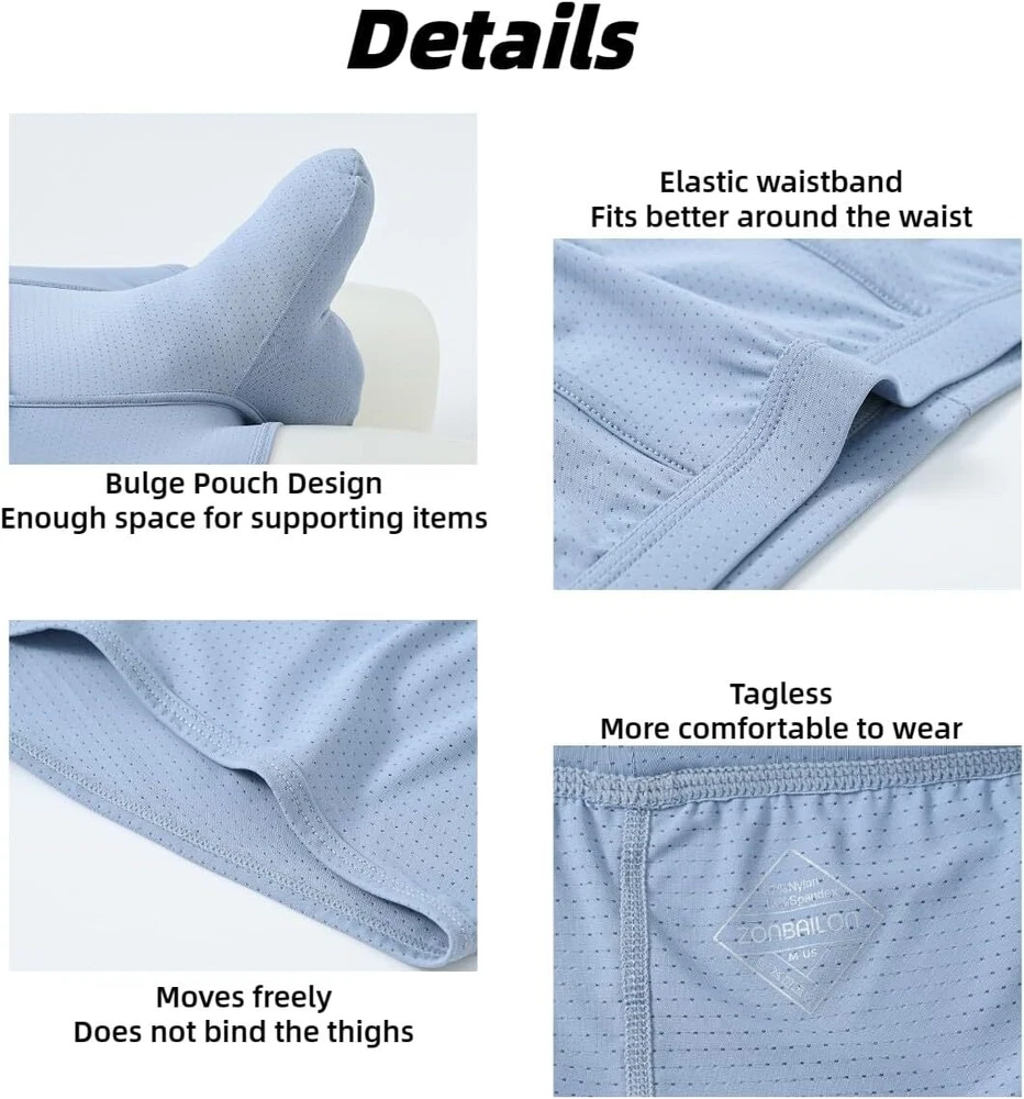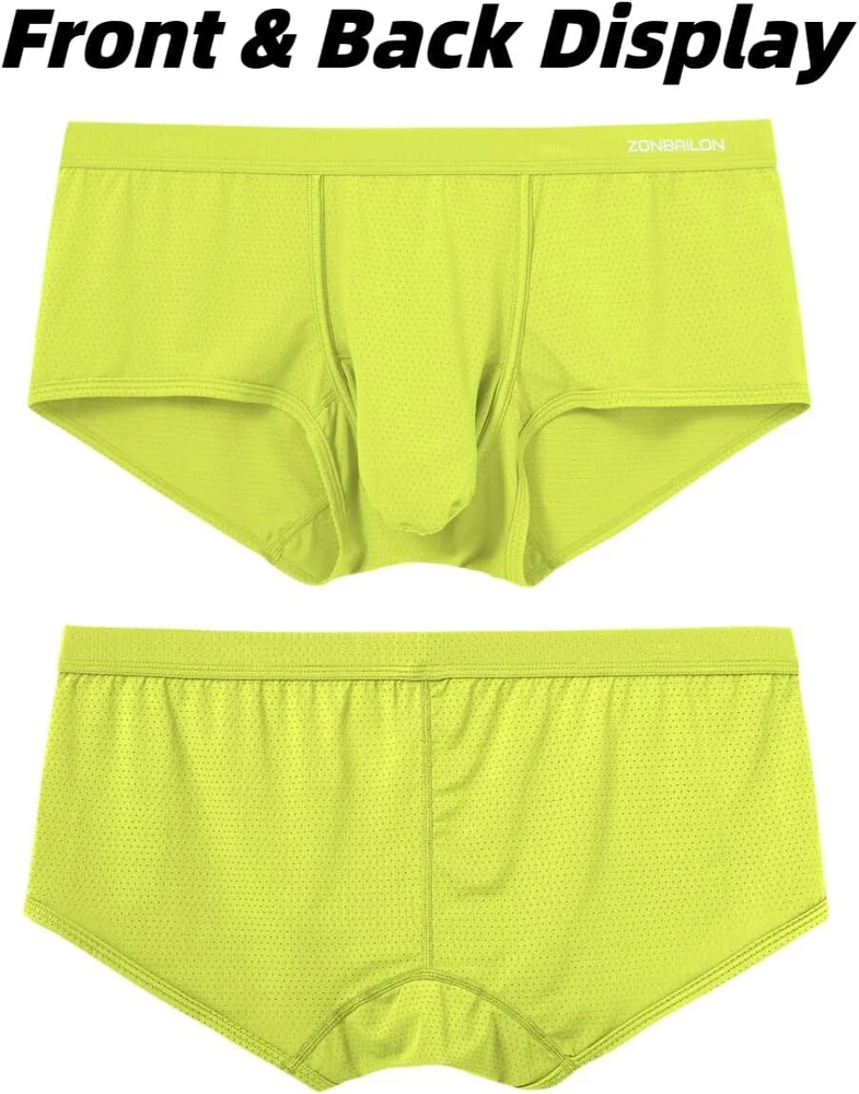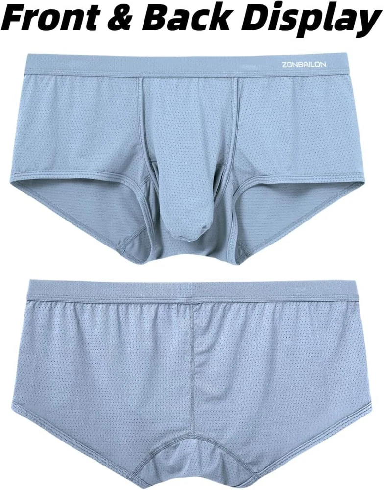About this item Experience unmatche d comfort with our mens athletic underwear, crafted from 87% nylon and 13% spandex. The ice silk fabric provides a soft, cool touch against the skin, ensuring you stay comfortable throughout the day, no matter the activity Breathability is key with separate pouch boxer underwear featuring placed ventilation holes. This design promotes airflow, preventing moisture buildup and keeping you fresh, making these men's sexy boxer briefs with pouch ideal for both everyday wear and intense workouts Mens underwear boxer briefs features a double pouch design that adds extra support and enhances your well-being. This thoughtful construction ensures maximum comfort and provides a secure fit, effectively reducing chafing during physical activities Available in a range of sizes from Medium to 3X-Large, our elephant trunk underwear men cater to various body types. Medium = 32"-34", Large = 36"-38", X-Large = 40"-42", XX-Large = 44"-46", 3X-Large = 48"-50" Whether you're working, exercising, or relaxing at home, these mens mesh underwear are perfect for any occasion. Experience the ultimate comfort and support with our bulge pouch boxer briefs