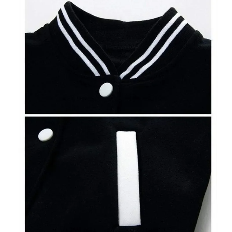 Brand new Varsity jacket unisex color : Black closure : Button Collar : Band Pattern : Solid Fabric : Wool inner Material : Polyester We manufacture customize jackets on customer demand