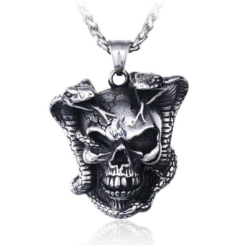Brand: Cy trendy Material: 316L Stainless Steel Color: Vintage Silver & Black Chain Length: 60cm Dimension: 52mm*40mm Weight: 55g We offer high quality rings by using GENUINE 316L Stainless Steel as material,The 316L stainless steel do not suffer corrosion,tarnish or rust when expose in wet enviroment, it is one of the best metal when choosing rust resistance rings and necklaces because of it's sufficiently reactive to protect itself from further attack by forming passive corrosion product layer The package include: 1 x necklace