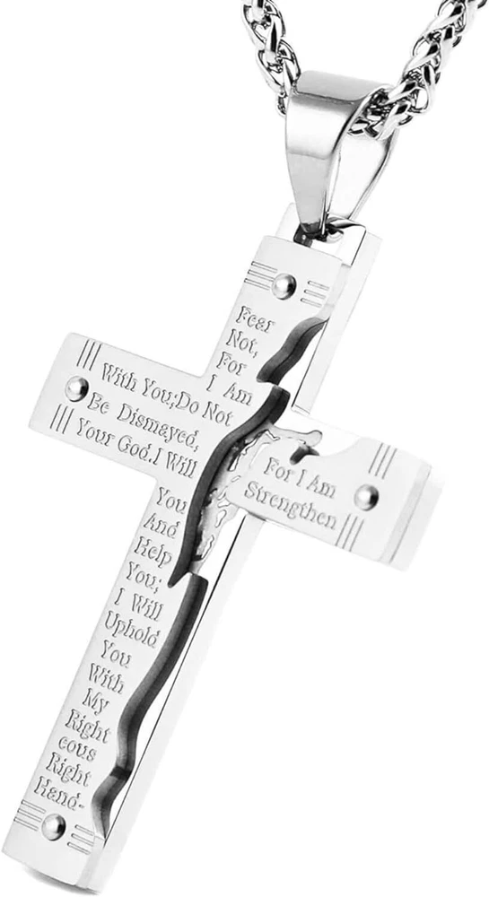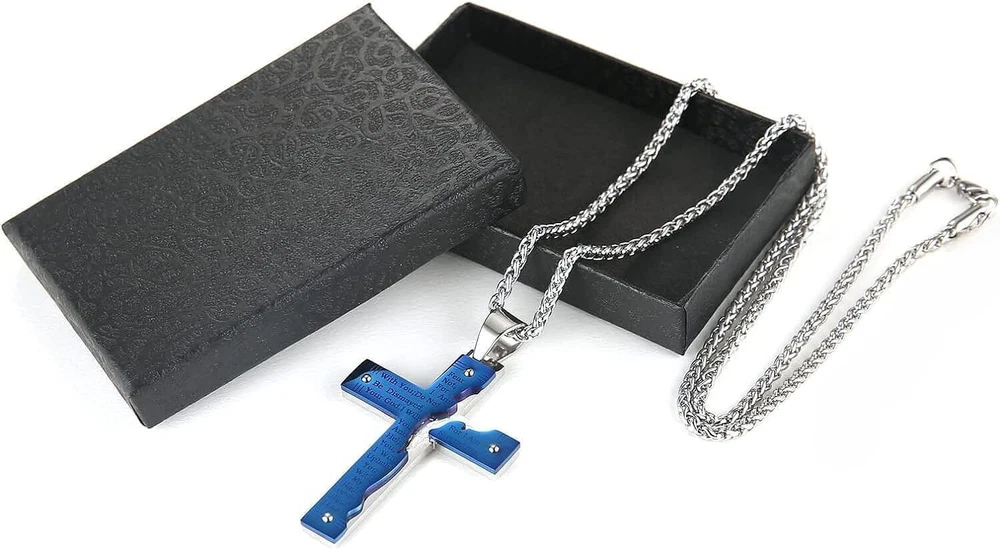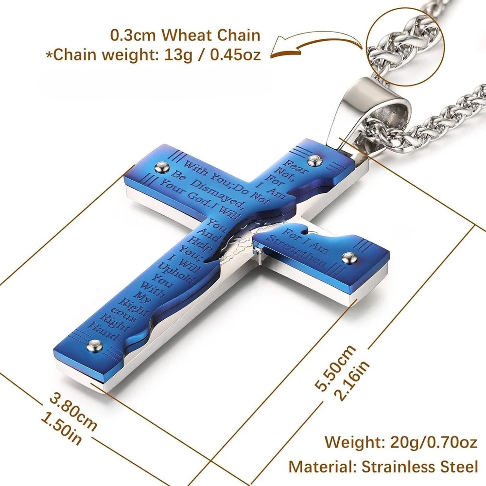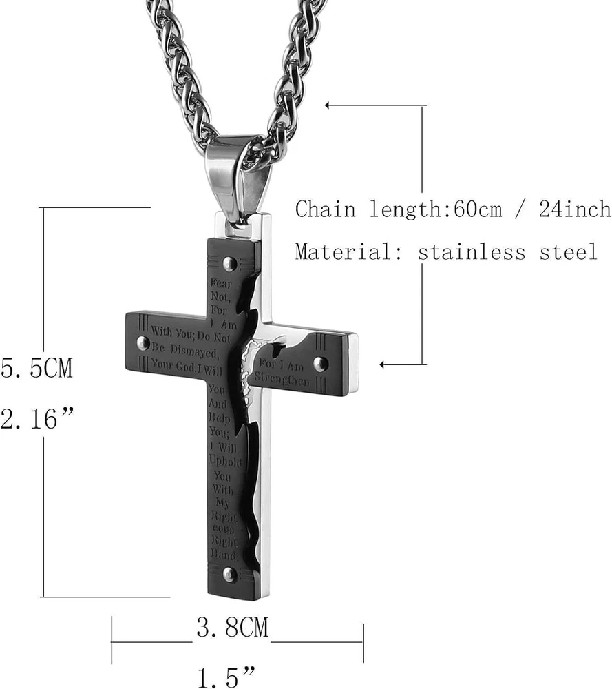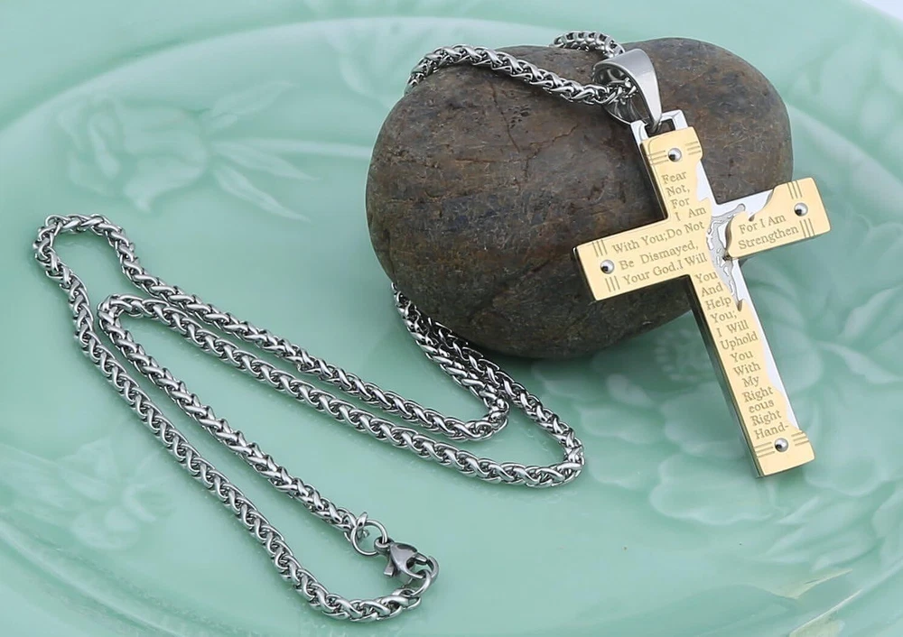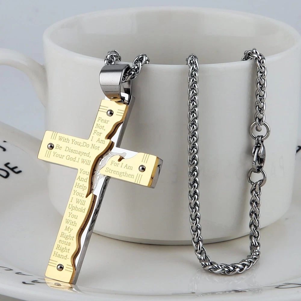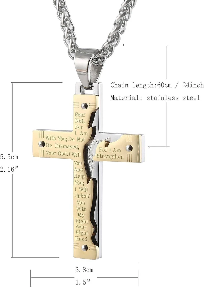 Product Description From brand "Cy trendy" We Committed to the design and production of men's and women's jewelry We love life and yearn for freedom Give out your brilliance every day Don't need too many words. Product Description: Pendant size: Please see list images show . Material Type:316 stainless steel. Suitable for daily wear, outdoor, shower, gym and sports. Smooth shining finish. LOW MAINTENANCE; Resistant to discolouration, sweat, heat, tarnish, water, smudge. Can be stored away without tarnishing. Suitable for sensitive skin and allergy prone skin. Will not irritate skin or cling to clothing. Please do not use if allergic to stainless steel. Gold Cross Religious Bible Verse Lord's Prayer Necklace Cross Pendant Baptism Christian Gothic Punk Cross Biker Pendant Package Included: 1 x Pendant + 1 x Chain 24 inch
