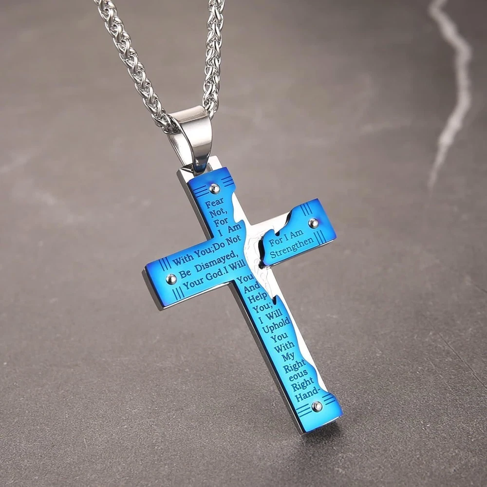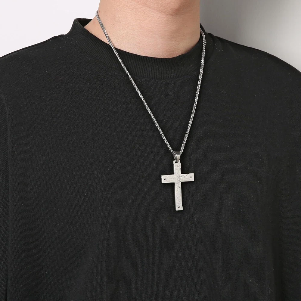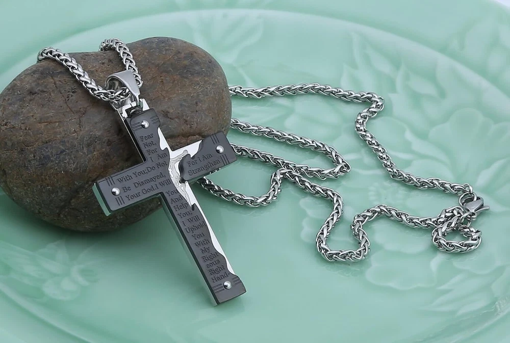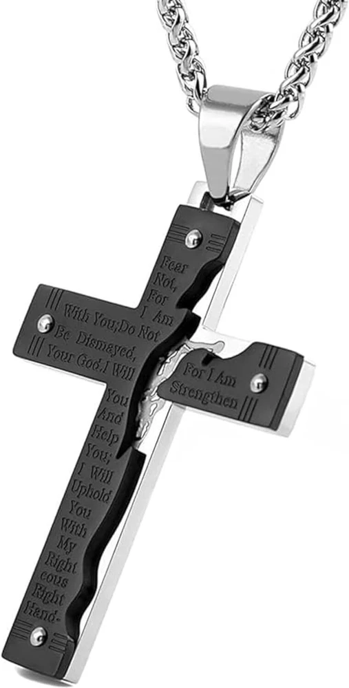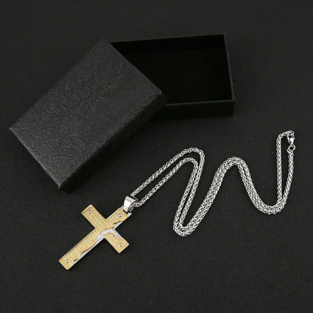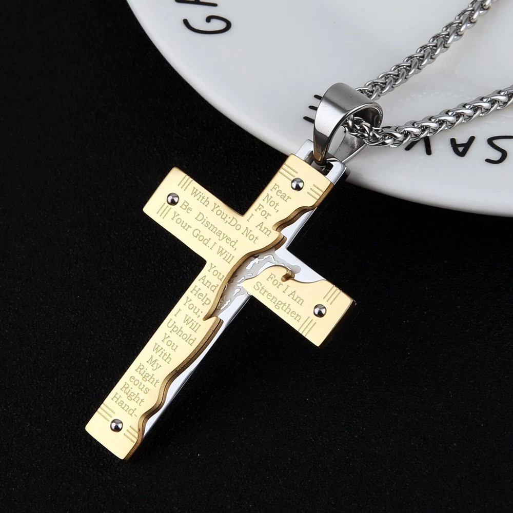 Product Description From brand "Cy trendy" We Committed to the design and production of men's and women's jewelry We love life and yearn for freedom Give out your brilliance every day Don't need too many words. Product Description: Pendant size: Please see list images show . Material Type:316 stainless steel. Suitable for daily wear, outdoor, shower, gym and sports. Smooth shining finish. LOW MAINTENANCE; Resistant to discolouration, sweat, heat, tarnish, water, smudge. Can be stored away without tarnishing. Suitable for sensitive skin and allergy prone skin. Will not irritate skin or cling to clothing. Please do not use if allergic to stainless steel. Gold Cross Religious Bible Verse Lord's Prayer Necklace Cross Pendant Baptism Christian Gothic Punk Cross Biker Pendant Package Included: 1 x Pendant + 1 x Chain 24 inch