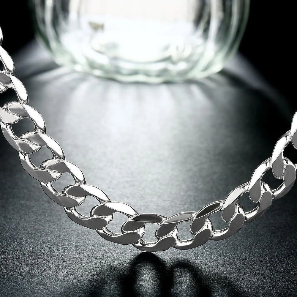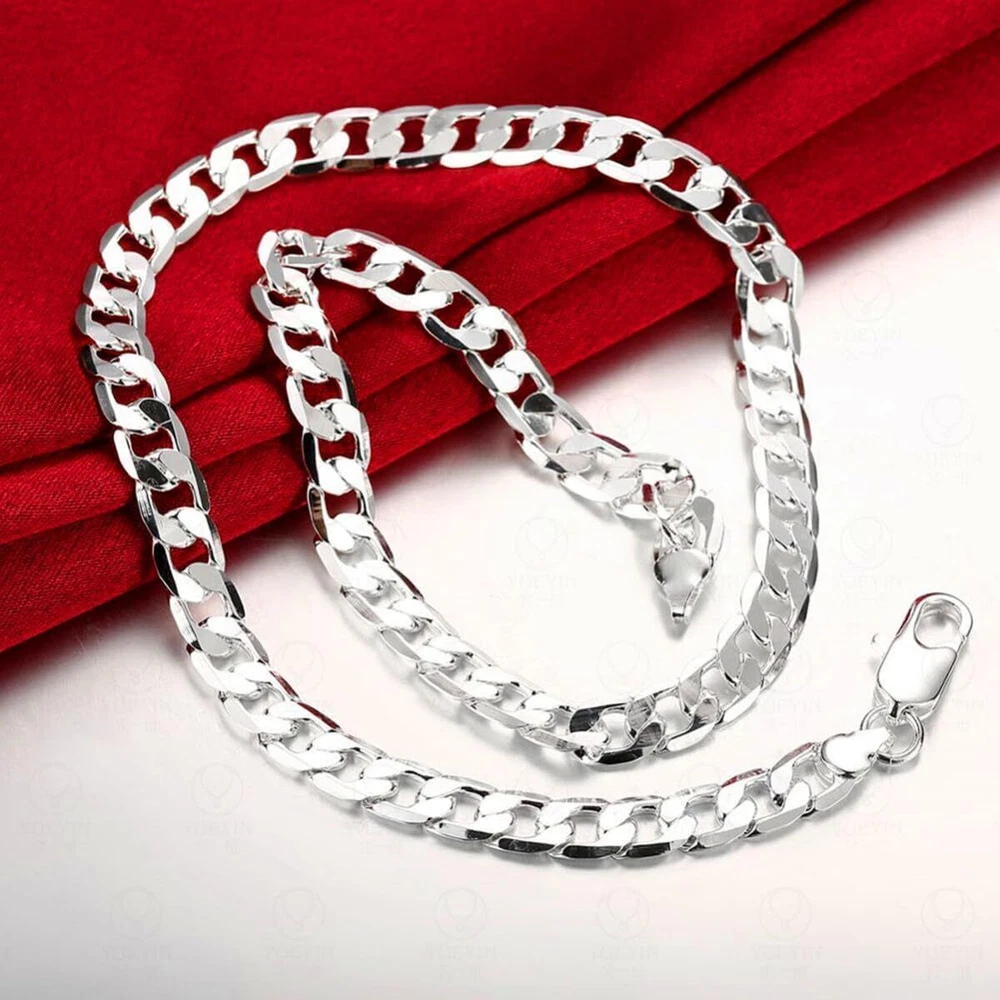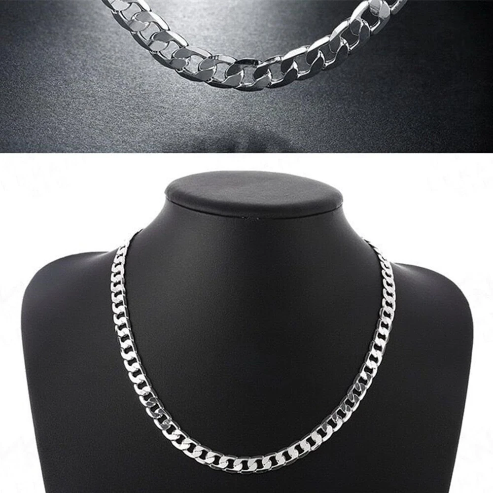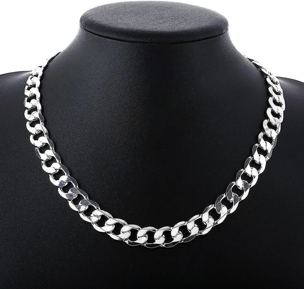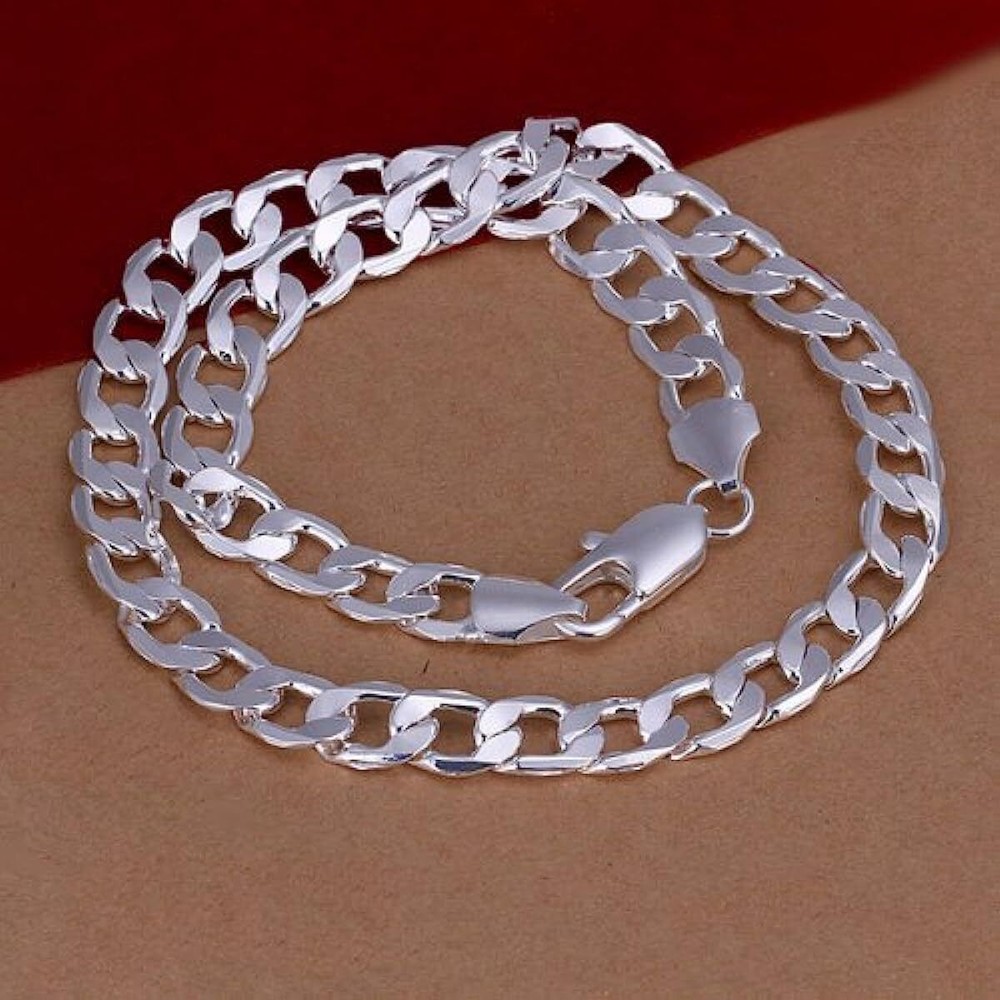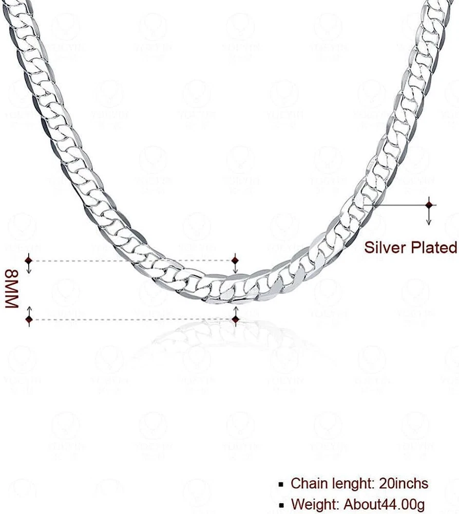 Brand : Cy trendy Width: 8mm or 10mm or 12mm Lenght: 20 inch . 100% Brand New It can be a gift special to your husband, friends, family, and yourself. It is a symbol of love. Metal: Sterling Silver Plated Brass. Nice qualitily and clasic design . New Men's Fashion Jewelry 925 Sterling Silver Plated Curb Chain Necklace 20 inch