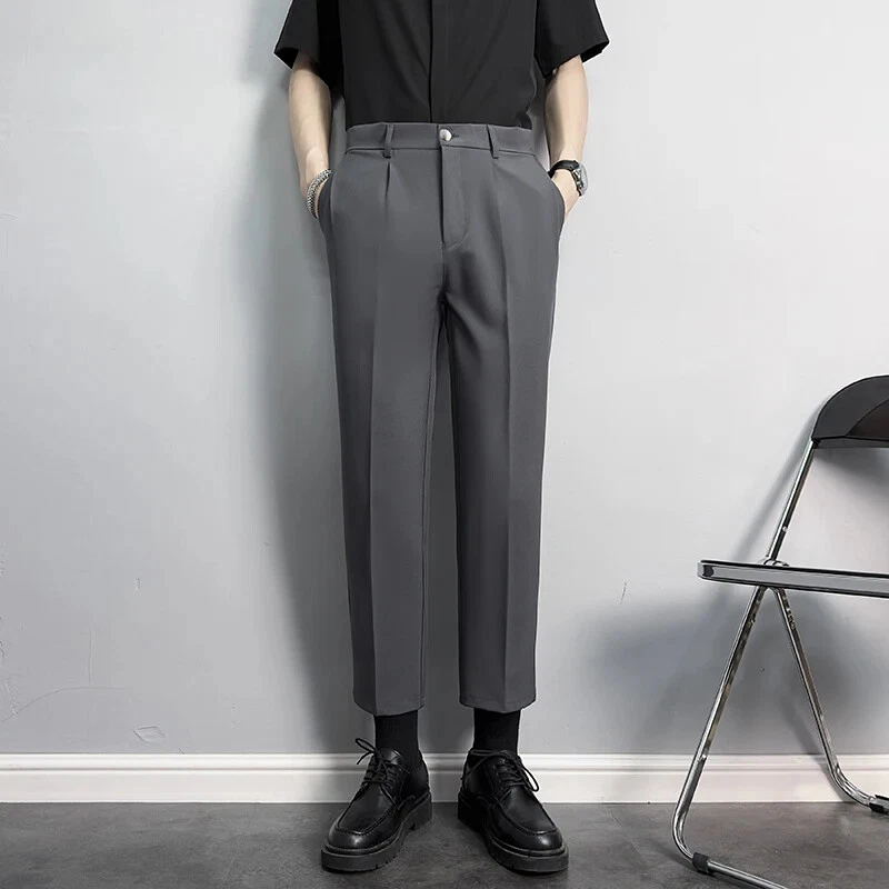 These pants are a game-changer! The fit is perfect—slim but comfortable, great for both office and casual wear. The anti-wrinkle fabric keeps them looking sharp all day, and the quality feels premium. Love the straight-leg design—very stylish yet professional. Highly recommend for any guy needing versatile, polished trousers.