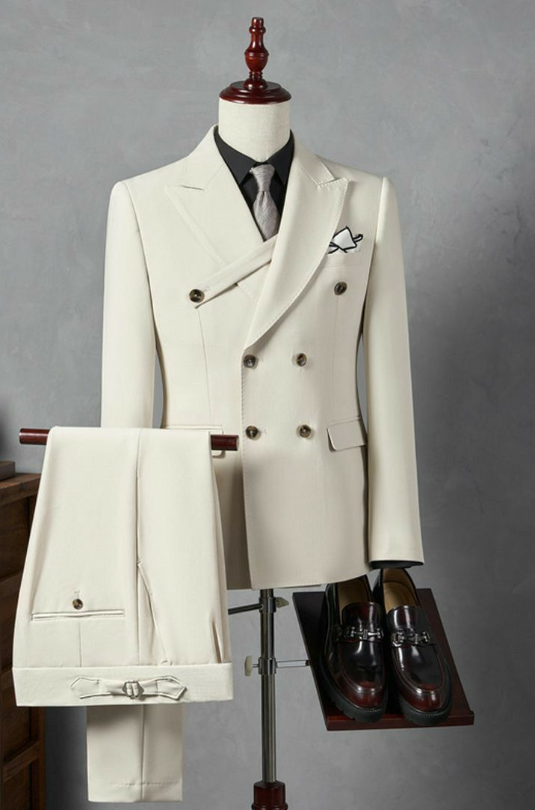 Great communication, item looks like photo as far as style but the color seems to be way more white than ivory. Quality is pretty good and the measurements were correct from the custom measurements given. As other reviews stated, it shipped in a small bag and suit was squished in there so it was quite a bit wrinkled upon arrival. Good for the value.