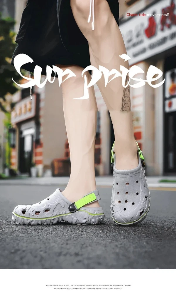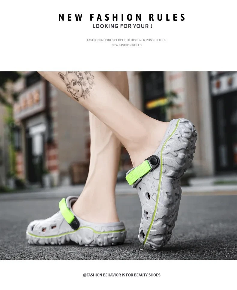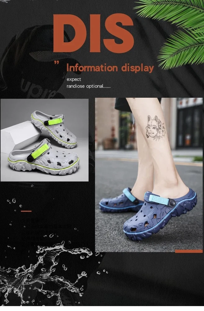 Product Features: Lightweight & Breathable : EVA upper with ventilation design keeps feet cool and comfortable. Soft EVA Sole : Flexible, cushioned sole provides comfort for long wear. Two-Way Design : Can be worn as slip-on clogs or secured with elastic back strap. Durable & Non-Slip : EVA outsole ensures good traction for beach, garden, or daily use. Versatile Style : Perfect for summer outdoor activities, casual walking, beach, or home wear. Specifications: Style: Concise / Casual Heel Height: Flat (≤1cm) Upper Material: EVA Outsole Material: EVA Insole Material: EVA Closure: Elastic Band Pattern: Solid Occasion: Beach / Outdoor / Casual Fit: Runs smaller than usual (recommend 1–2 sizes up) Size Guide (Men’s US Conversion Approx.): EU 40 → Foot Length 24cm (≈ US 6.5) EU 41 → Foot Length 24.5cm (≈ US 7.5) EU 42 → Foot Length 25cm (≈ US 8) EU 43 → Foot Length 25.5cm (≈ US 9) EU 44 → Foot Length 26cm (≈ US 9.5) EU 45 → Foot Length 26.5cm (≈ US 10.5) EU 46 → Foot Length 27cm (≈ US 11) EU 47 → Foot Length 27.5cm (≈ US 12) ⚠️ Note: Sizes run small. Please order 1–2 sizes larger than your usual US size.
