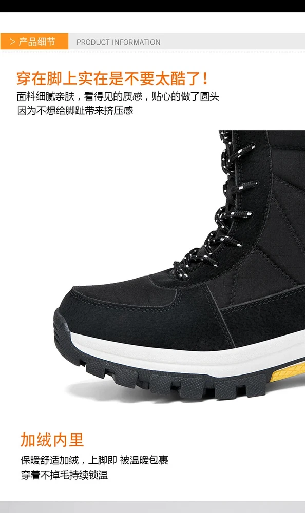 Features: 1. Warmth: Outdoor winter boots are designed to provide excellent insulation and keep your feet warm even in freezing temperatures. They often feature thick, insulating materials and thermal linings. 2. Waterproofing: Winter boots are typically made with waterproof or water-resistant materials, protecting your feet from snow, slush, and puddles. This feature helps to keep your feet dry and comfortable in wet conditions. 3. Traction: Winter boots are equipped with specialized outsoles that provide excellent grip and traction on slippery and icy surfaces. This ensures stability and reduces the risk of slips and falls. 4. Durability: Winter boots are designed to withstand harsh winter conditions and are made with durable materials that can withstand wear and tear. This ensures their longevity and allows them to be used for multiple winter seasons. 5. Support: High-top winter boots provide excellent ankle support, reducing the risk of injuries and offering stability during outdoor activities such as hiking or walking on uneven terrain. 6. Insulated Footbed: Many winter boots feature insulated footbeds that provide an extra layer of warmth and comfort. This helps to keep your feet cozy even in extreme cold temperatures. 7. Style: Outdoor winter boots come in a variety of stylish designs, allowing you to stay fashionable while keeping your feet warm and protected. Whether you prefer a rugged or a more fashionable look, there are winter boots to suit your style. Note: The size chart is based on the length of the foot, and the corresponding US size is selected according to the length of the foot! Size Chart: US 5.5 = EUR 38 = Recommended Foot Length 24.0 CM US 6.5 = EUR 39 = Recommended Foot Length 24.5CM US 7 = EUR 40 = Recommended Foot Length 25.0 CM US 8 = EUR 41 = Recommended Foot Length 25.5CM US 8.5 = EUR 42 = Recommended Foot Length = 26.0 CM US 9.5 = EUR 43 = Recommended Foot Length 26.5 CM US 10 = EUR 44 = Recommended Foot Length 27.0 CM US 11 = EUR 45 = Recommended Foot Length 27.5 CM US 11.5 = EUR 46 = Recommended Foot Length 28 CM US 12.5 = EUR 47 = Recommended Foot Length 28.5 CM US 13 = EUR 48 = Recommended Foot Length 29.0 CM