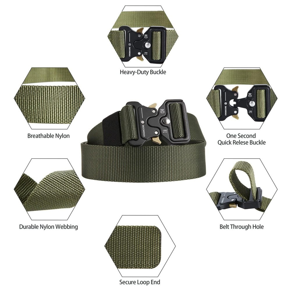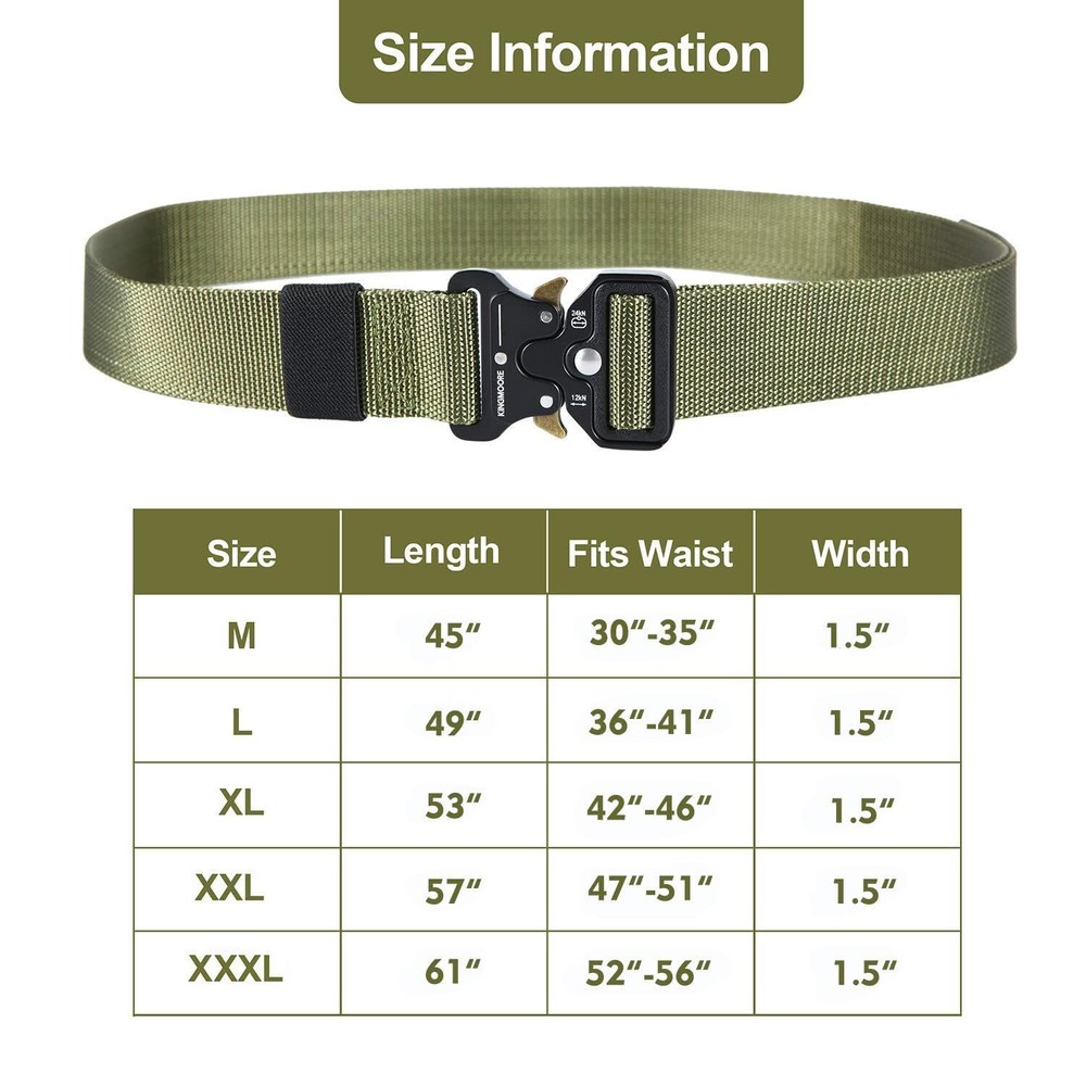Men's Tactical Belt Heavy Duty Webbing Belt Adjustable Military Style Nylon Belts Belt Size - Width:1.5”(3.8cm), fits waist 30"~ 56", Suitable for most people. High Quality Gun Belt - Made of high quality tear-resistant nylon, It’s very strong not flimsy at all. The military belts were popular use for any IWB or OWB holster without rolling over. It’s perfect for police, firefighters, CCW, security guards, electricians and utility workers in need of a great duty belt to carry tools or weapons. Alloy Heavy Duty Buckle - Aviation class 7075 aluminum alloy is used to make the buckle. In addition, advanced CNC is used for processing precision, and solid copper stainless steel material is used for processing its internal structure. It can endure an impact as high as 9,003N without deformation or damage, ensuring that it will not break off in case of external force. Its tightness and length can be adjusted freely to meet different wearing requirements. 1 Second Quick Relese Buckle - When you press the golden buttons at the same time, it will unlock very quickly. The buckle locks automatically when the buckle is closed again. It is very convenient to use. After Sales Service: We are dedicated to ensuring our customers' satisfaction. If any issue arises with the product, rest assured that we are here to assist you promptly and without hesitation. Choose for a risk-free and enjoyable shopping experience. Shipping We offer FREE shipping on all orders! We ship within Three business days of payment, usually sooner. We use a selection of shipping services such as UPS, FedEx, USPS etc. We only ship to the lower 48 states, no APO/FPO addresses or PO Boxes allowed. Local pickups and combined shipping options are not provided at this time. Return You can return a product for up to 30 days from the date you purchased it. Any product you return must be in the same condition you received it and in the original packaging. Please keep the receipt. Payment We accept payment by any of the following methods: PayPal Please pay as soon as possible after winning an auction, as that will allow us to post your item to you sooner! Feedback Customer satisfaction is very important to us. If you have any problem with your order, please contact us and we will do our best to make you satisfied. Contact Us If you have any queries, please contact us via ebay. We usually respond within 24 hours on weekdays. Please visit our eBay store to check out other items for sale! Thank you for shopping at our store.